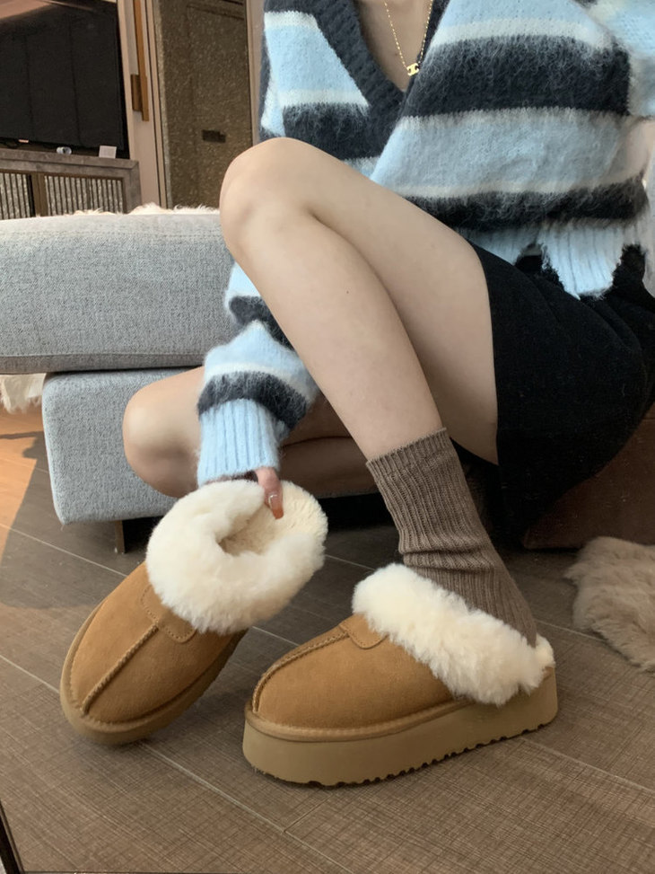 【品名】星拖丨真皮真毛雪地毛拖一脚蹬雪地鞋
