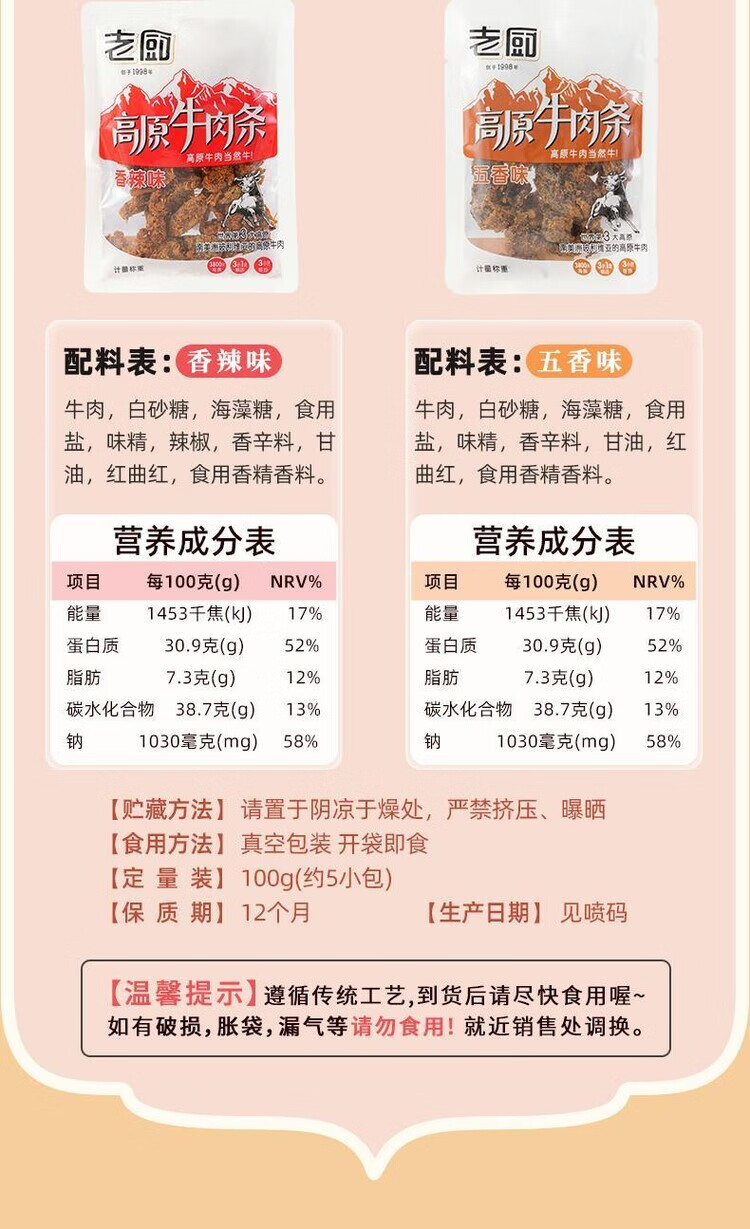 老厨高原牛肉条100g