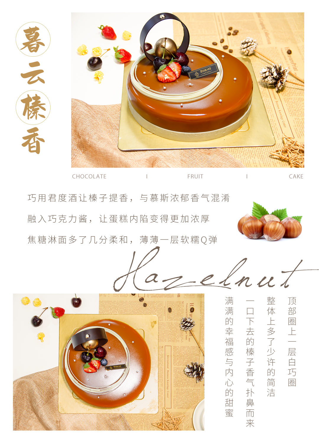 【暮云榛香】- 巧用君度酒让榛子提香 与慕斯香盈混淆 融入巧克力酱 让蛋糕内馅变得更加浓重
