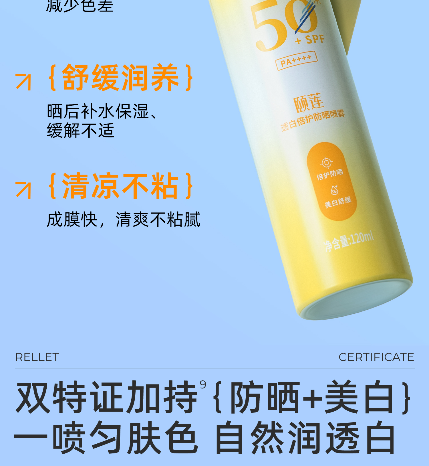 【颐莲·透白倍护防晒喷雾,49.9元/3支】 高倍防晒 保湿舒缓