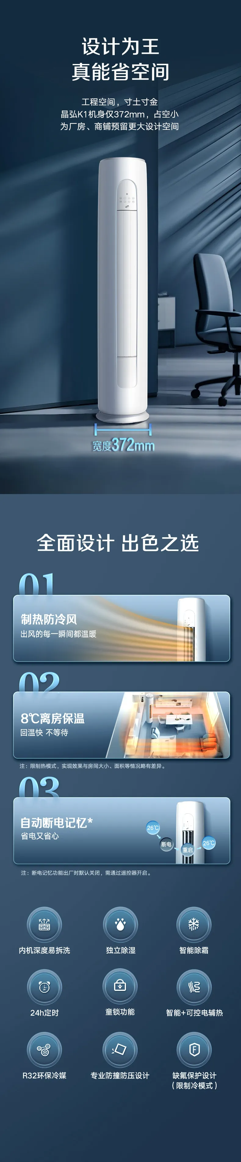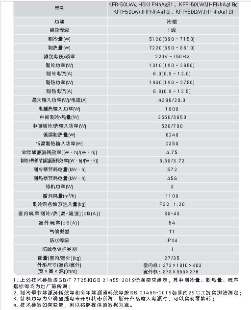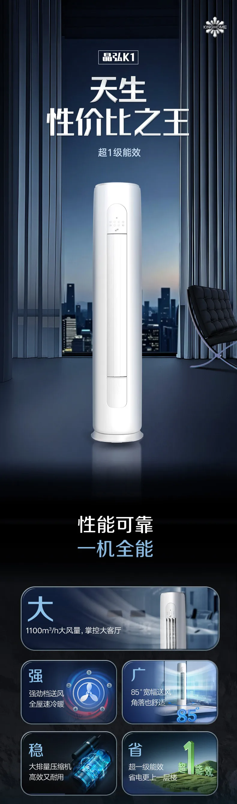 晶弘K1变频冷暖2匹1级能效柜机空调 KFR-50LW/JH5K1FNhAaB1(皓雪白)