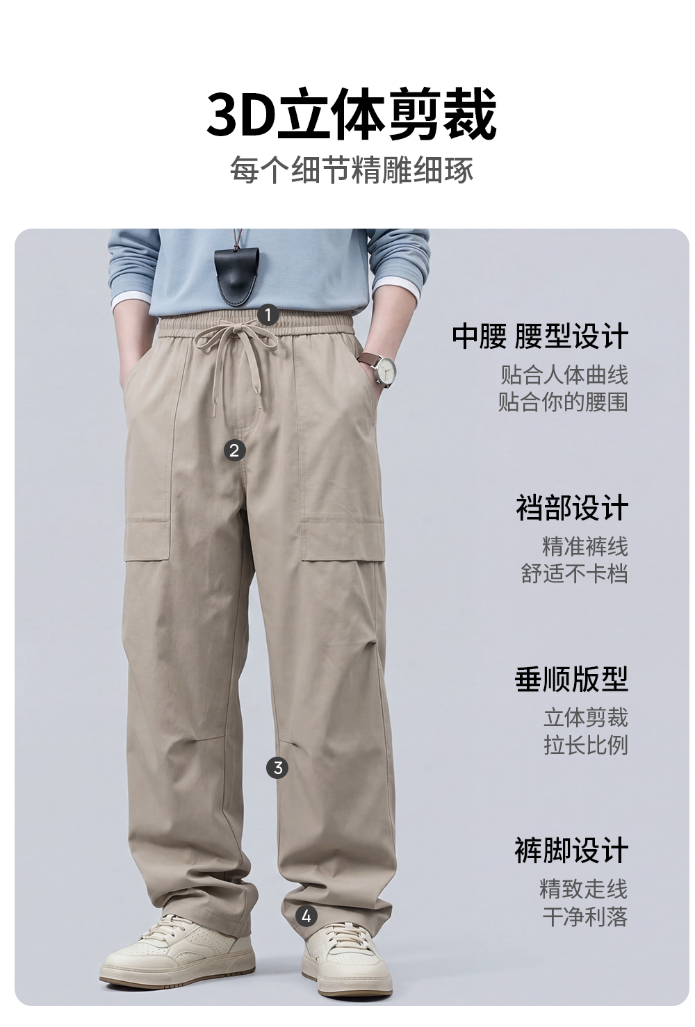 【不易缩水】圣得西舒适百搭休闲裤男款2026新款春季宽松直筒裤子