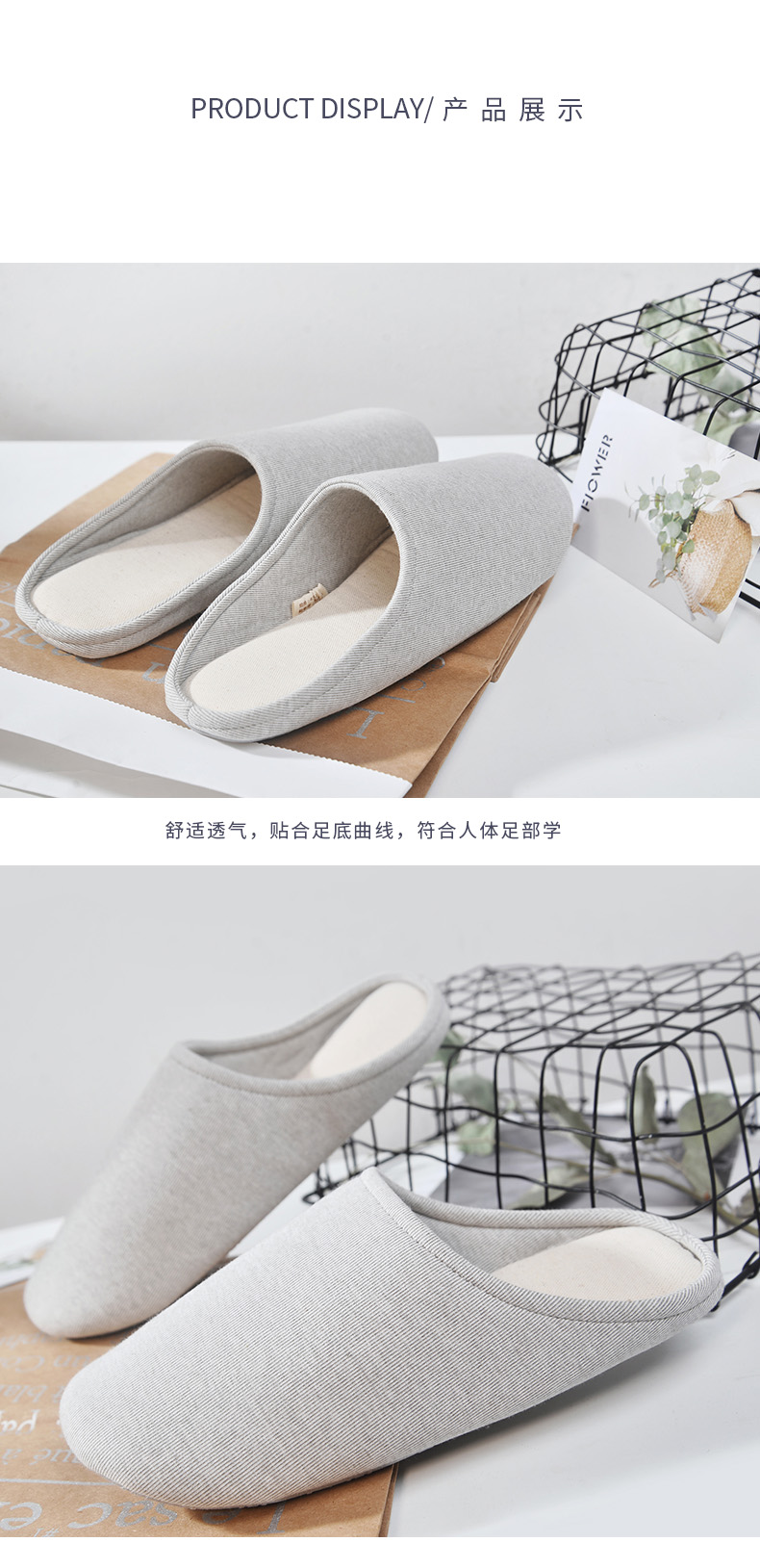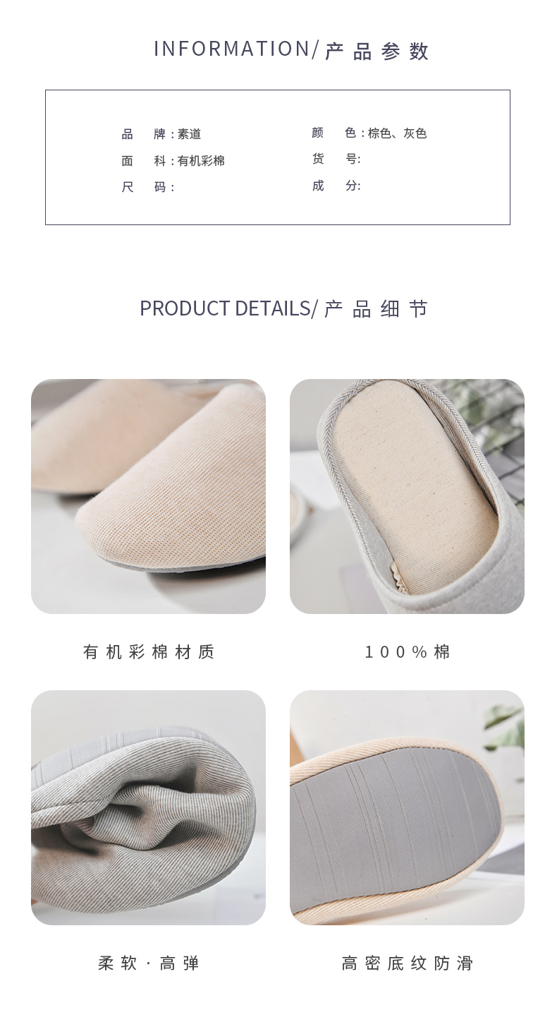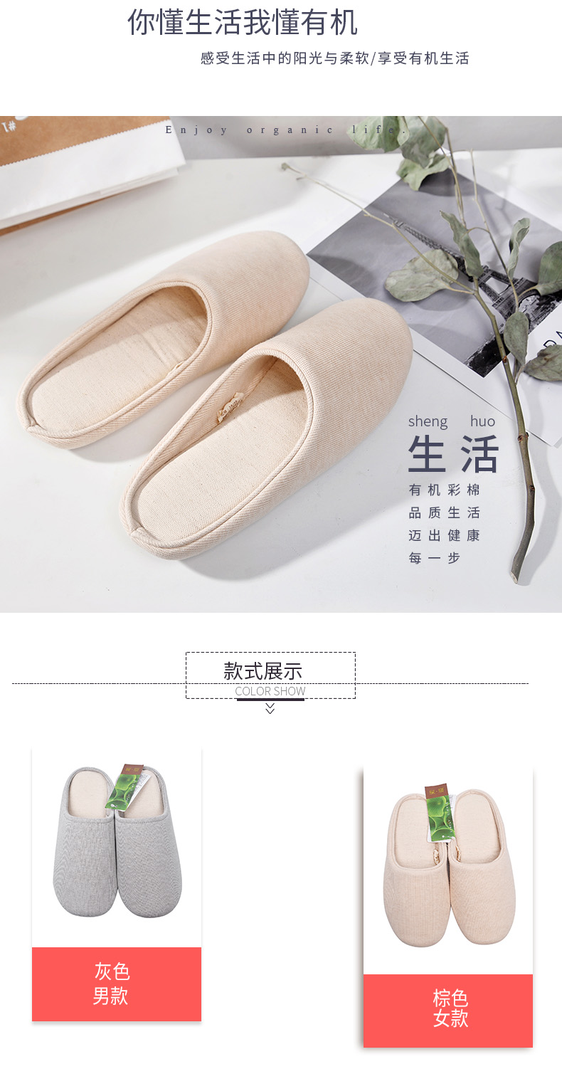 敦煌有机彩棉 素道秋冬季保暖情侣拖鞋 软底防滑居家男女静音棉拖