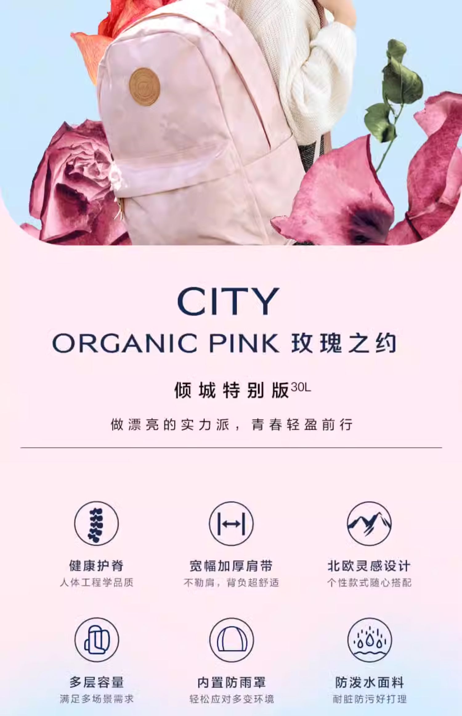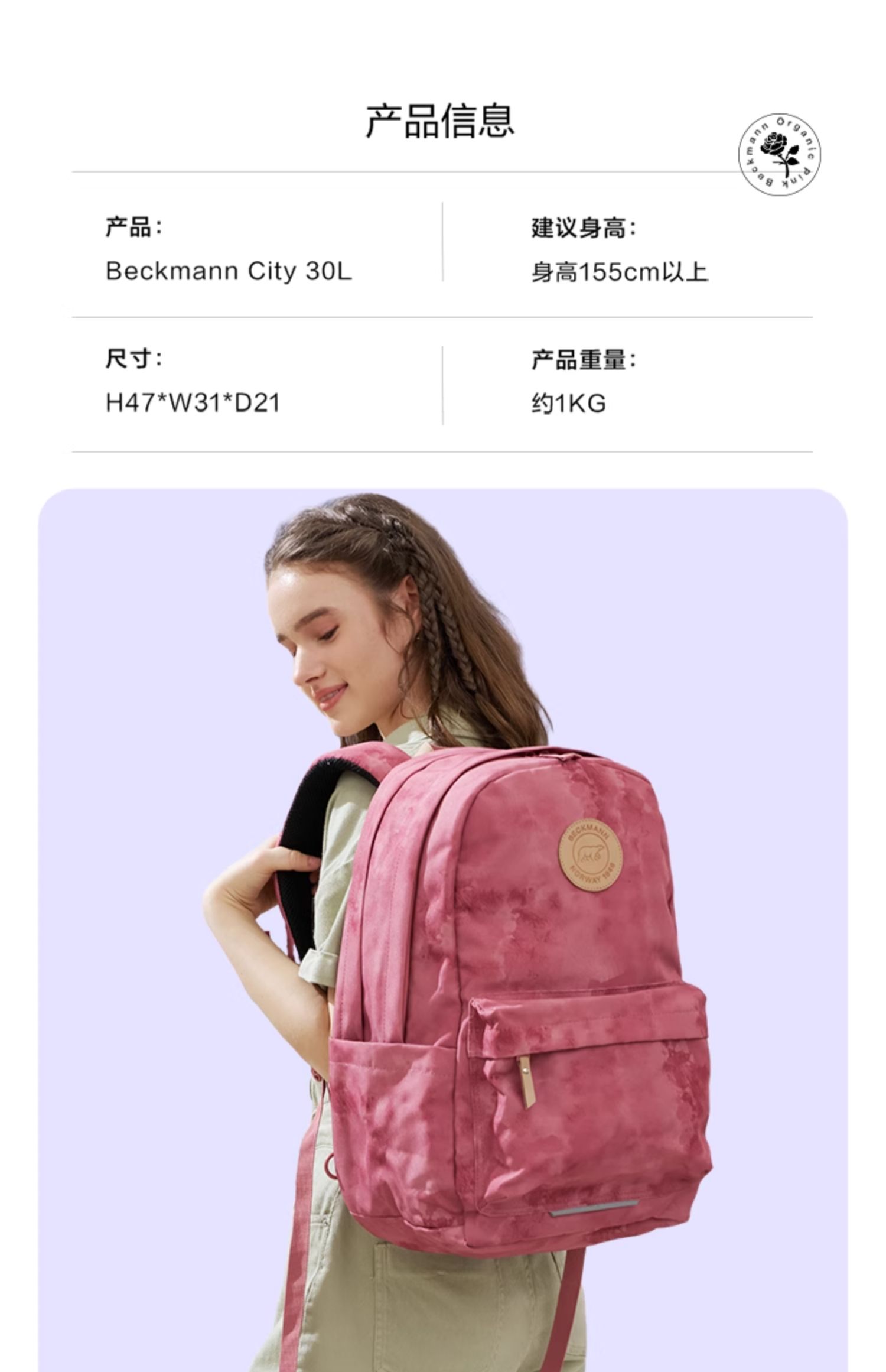 Beckmann倾城系列特别版 30L大容量,自重轻,简约纯色,上学/工作两相宜