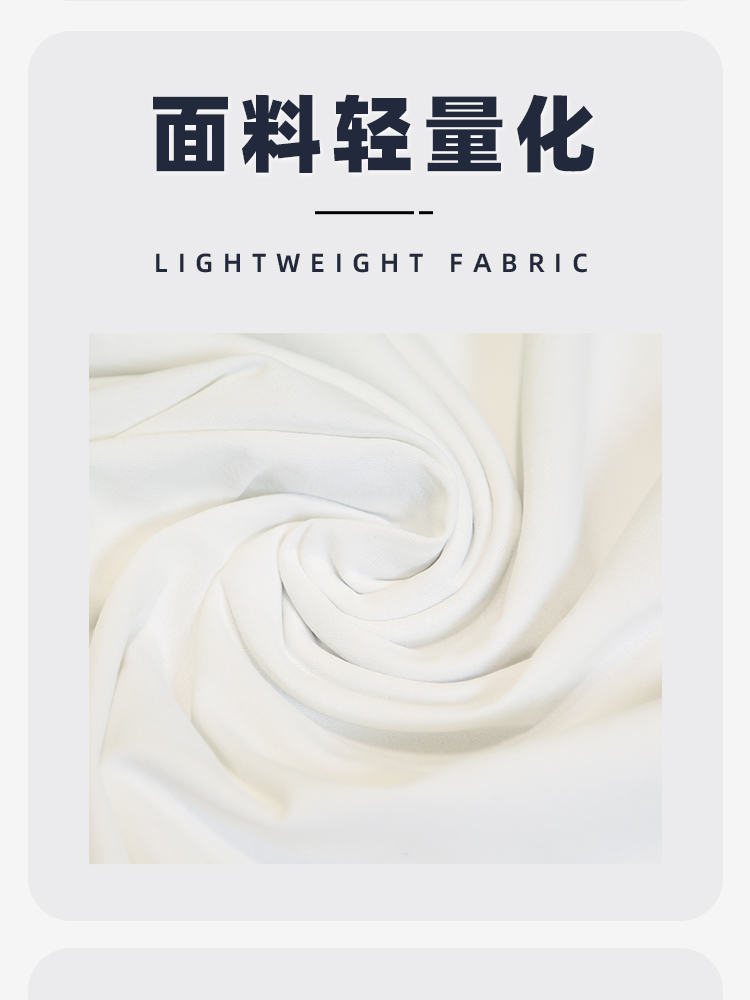 2,面料轻量化,同样的面料,相同的厚度,面料克重只有一半左右。