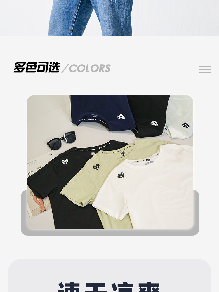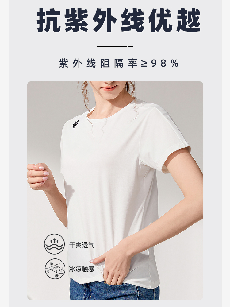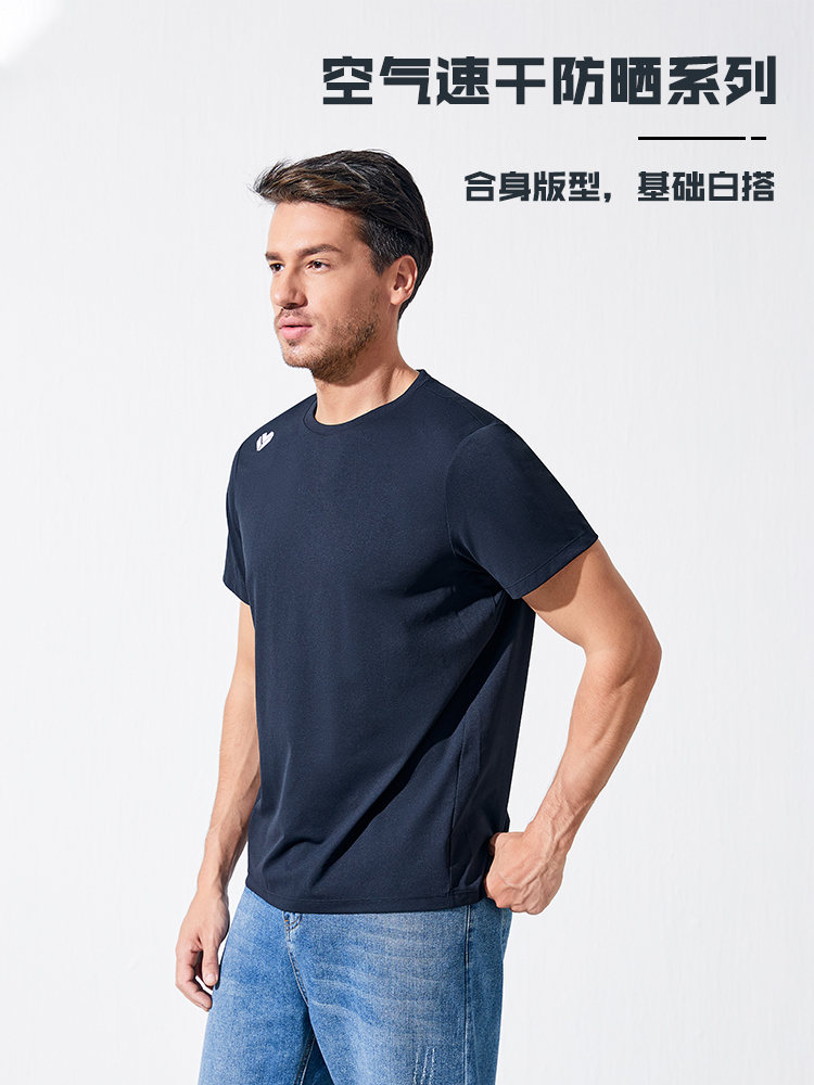1,采用SPIRAL汗明星轻量空气速干防晒系列面料制成运动短袖T恤,合身版型,基础白搭,面料触感轻盈柔韧,可摆脱运动后的汗湿粘滞感,使穿着者体感自然舒适。