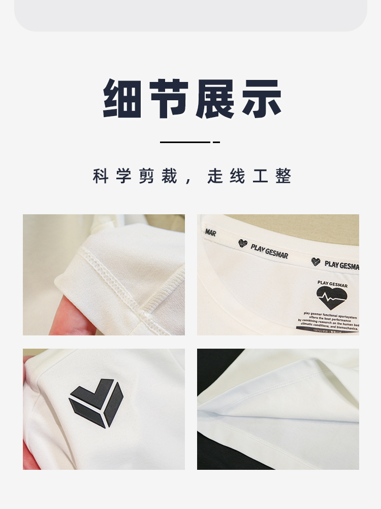 5.基础圆领设计,贴合舒适,科学剪裁,经典版型,遵循人体规律。匠心经典心形滴塑烫标,时尚有趣,低调简约,后领无感烫标设计,摆脱传统标签所带来的刺痒皮肤的现象。修饰身形,简约舒适,随心搭配衬衫,西装等外套休闲通勤风格。领口机洗不变形,袖口下摆双针加固,走线工整,不惧拉扯,百搭清爽。