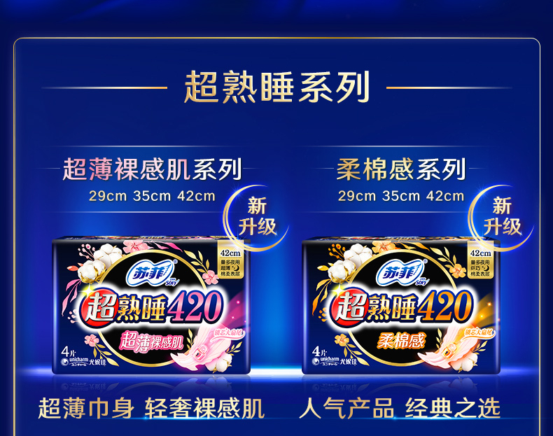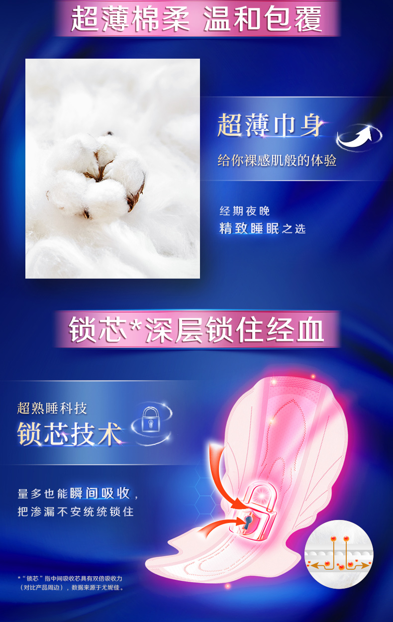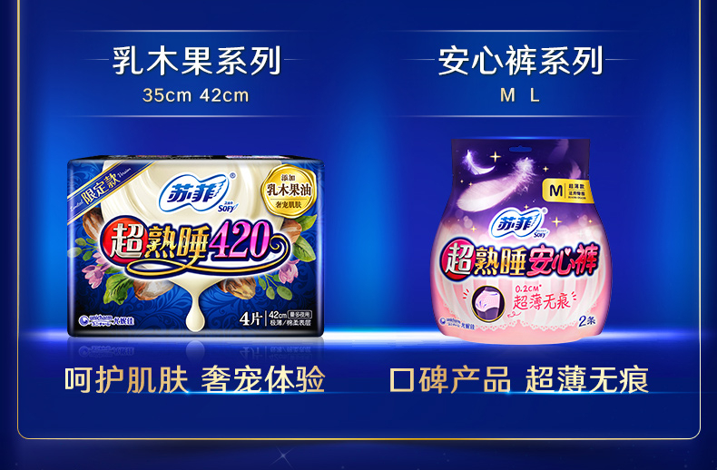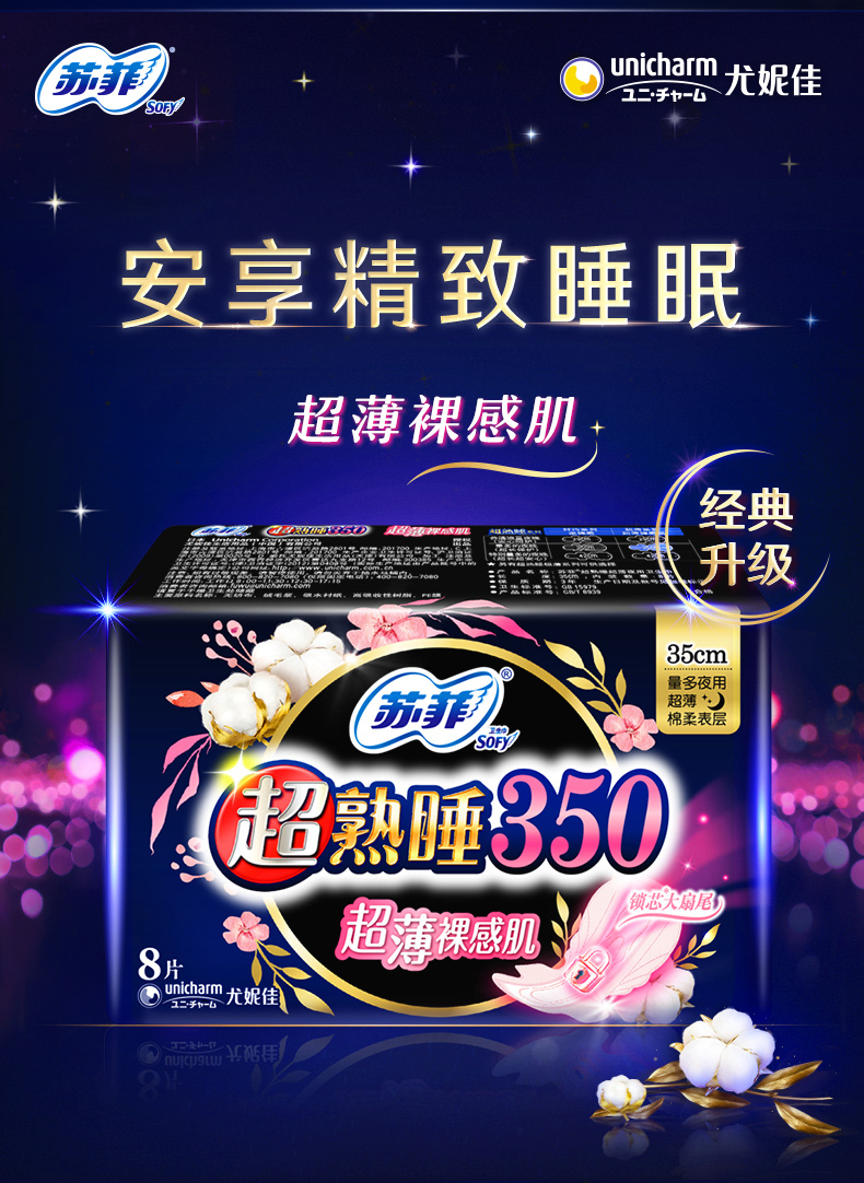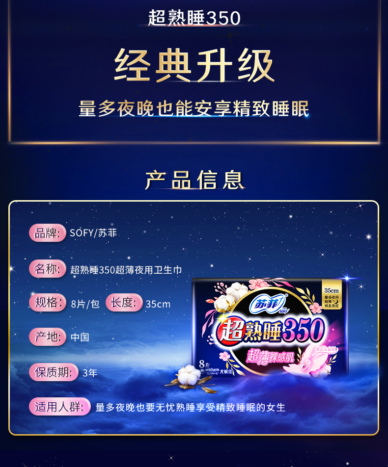 苏菲Sofy 超熟睡超薄裸感肌超长夜用卫生巾350mm 8片