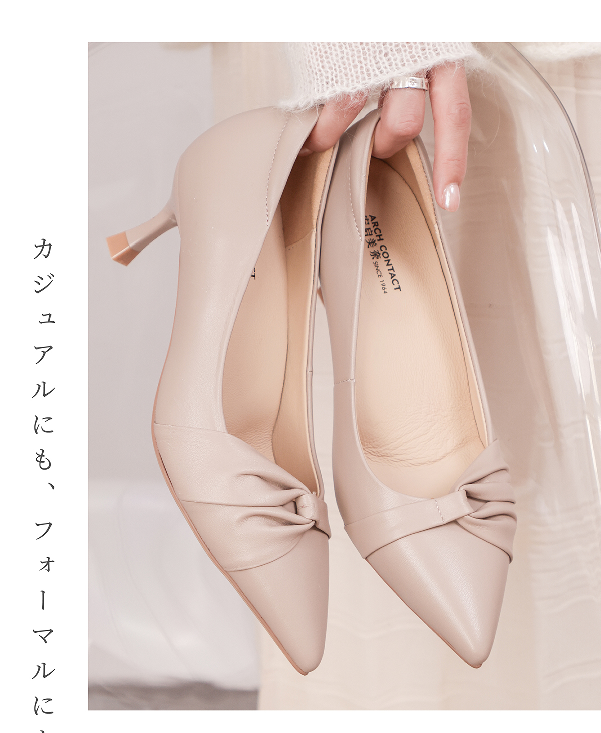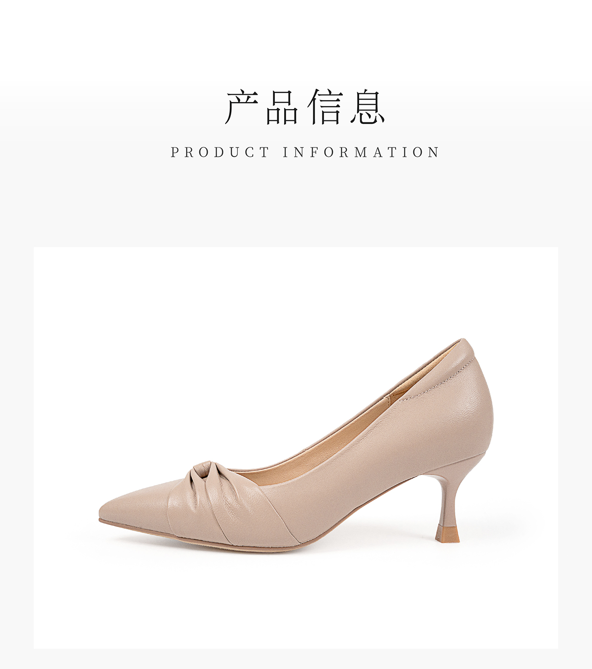 ARCHCONTACT安启美奈羊皮褶皱扣尖头高跟鞋52805