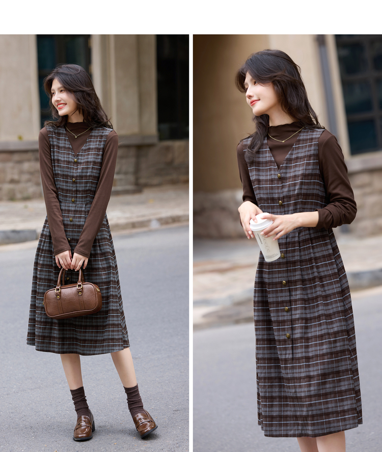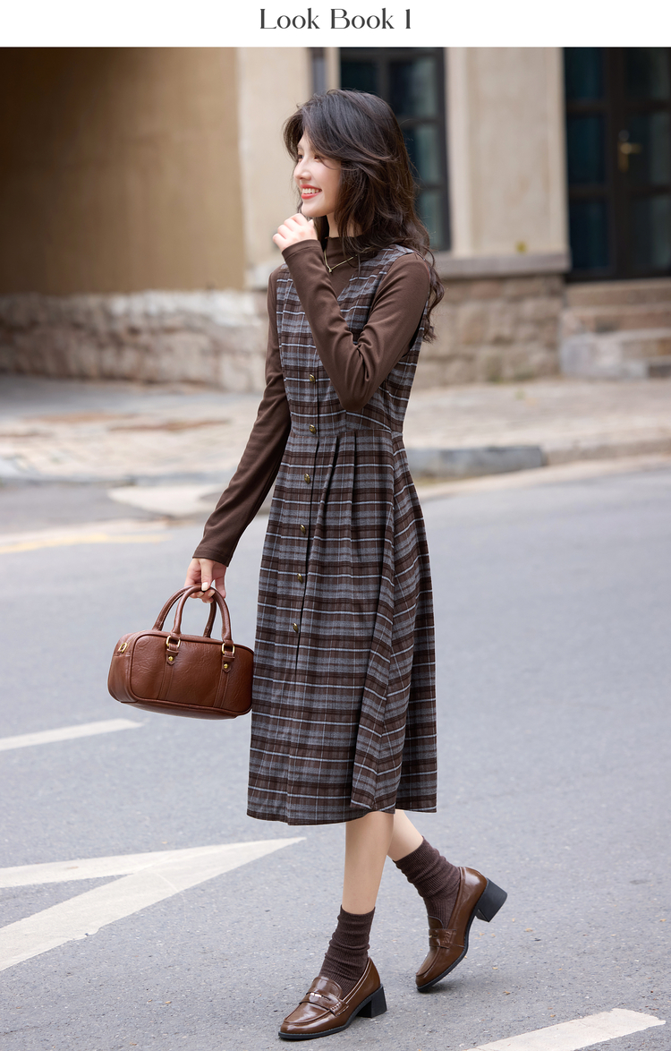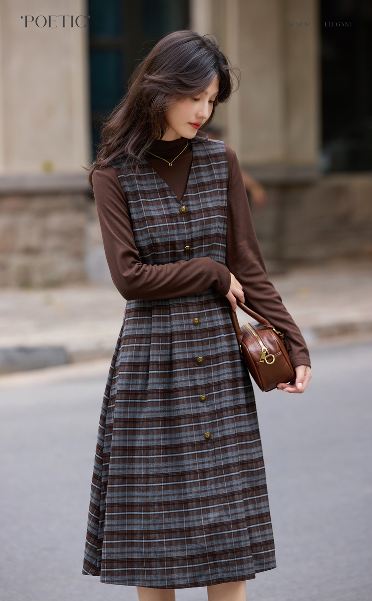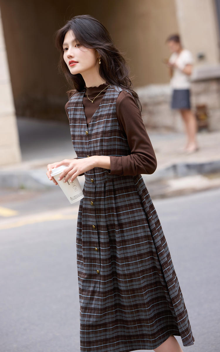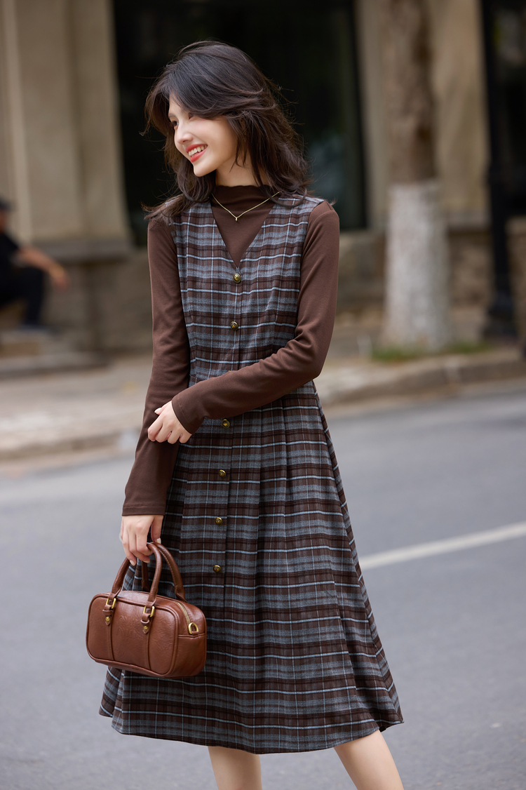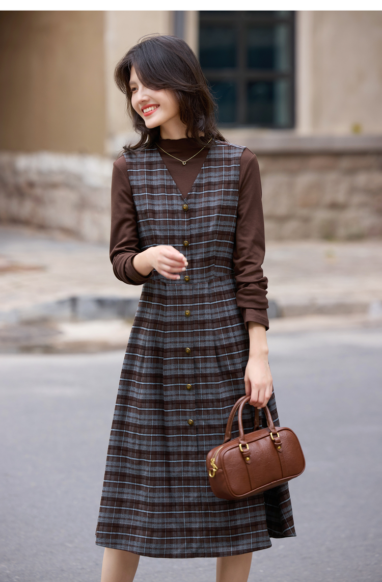 【10/23新品】熙世界老钱风穿搭毛呢背心裙套装女秋冬款针织打底衫连衣裙两件套