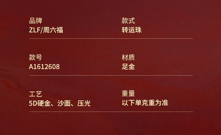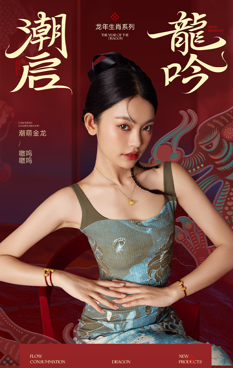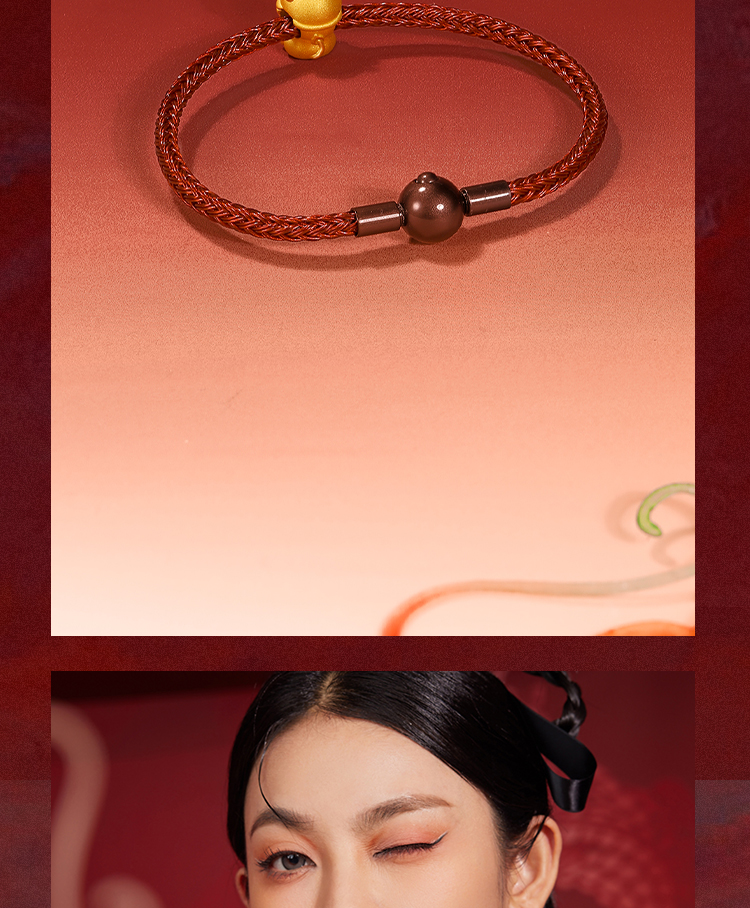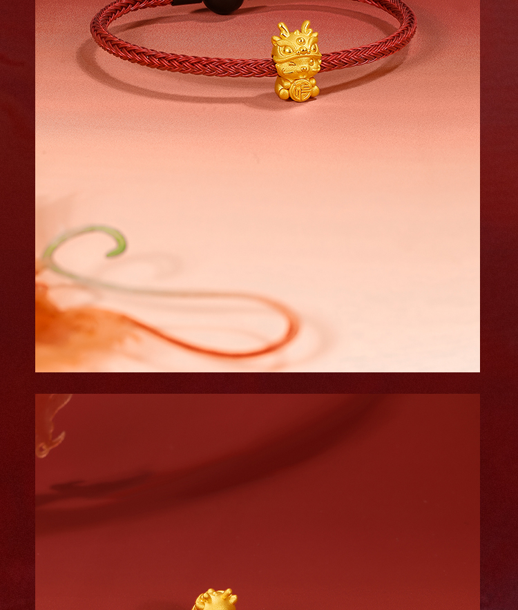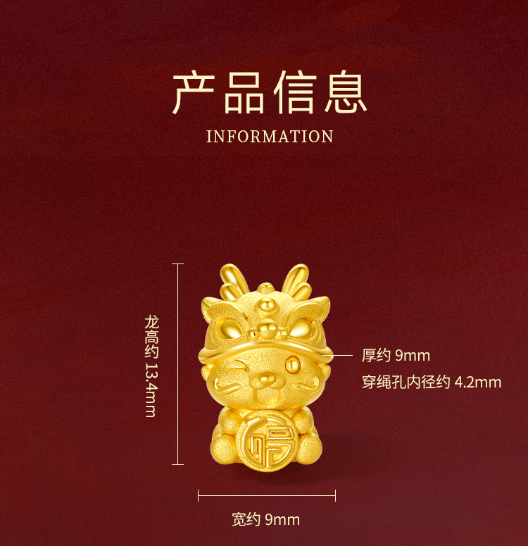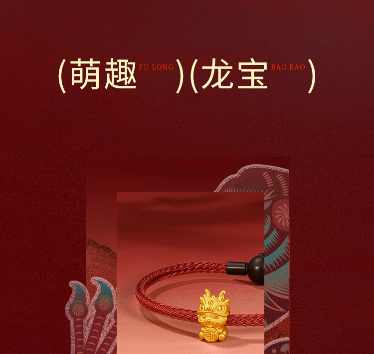 周六福黄金转运珠福财龙足金本命年生肖龙年手绳手链定价送女友礼物