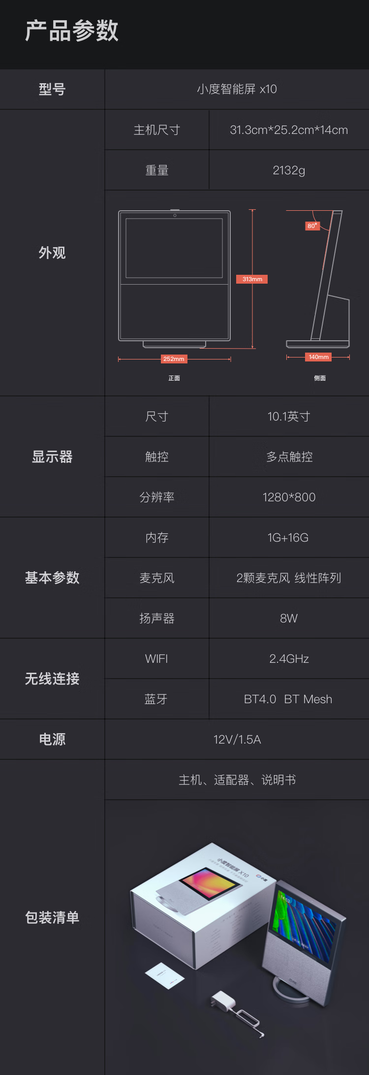 小度智能屏X10 10英寸高清大屏 影音娱乐智慧屏 触屏智能音箱 WiFi/蓝牙音箱 音响