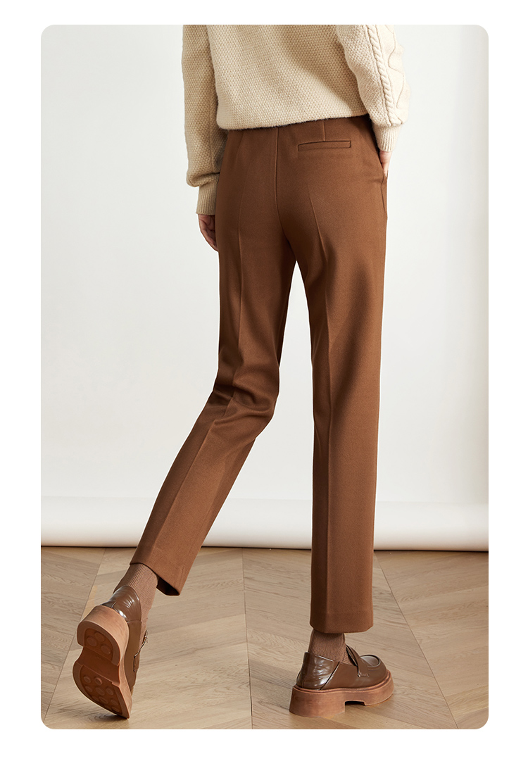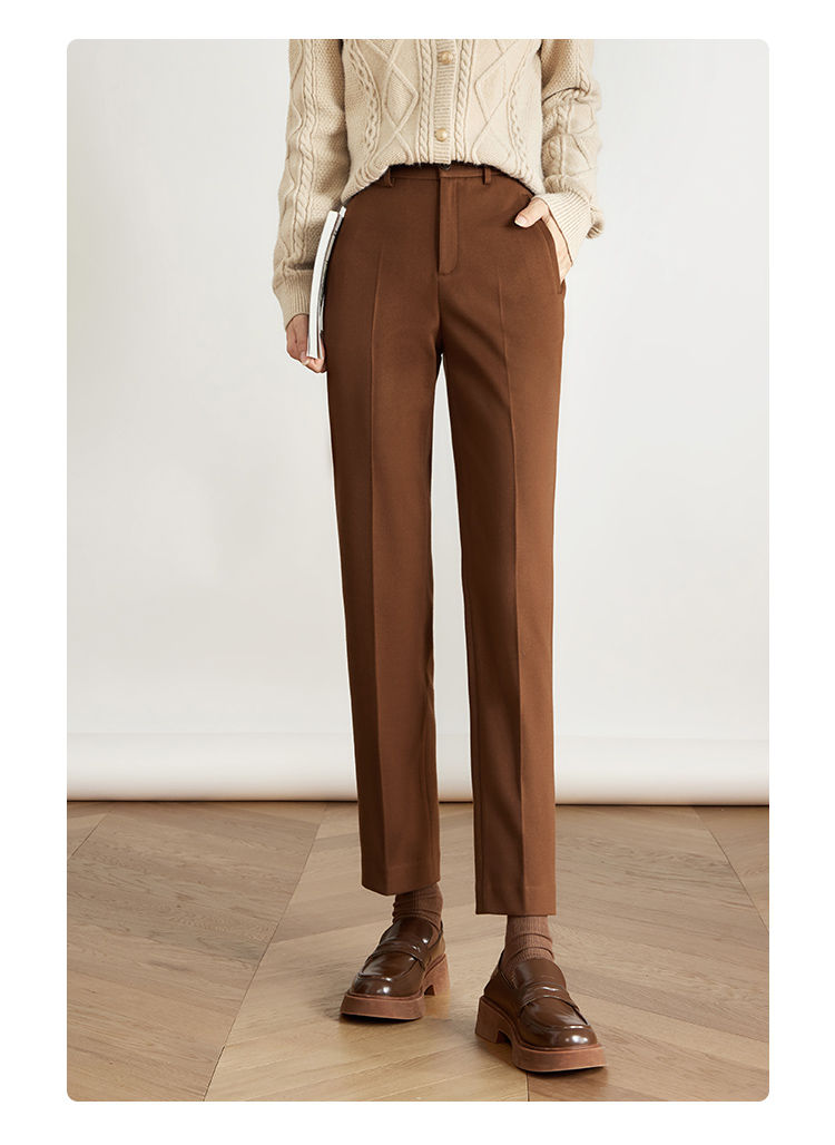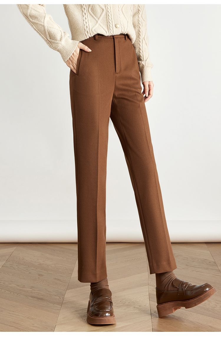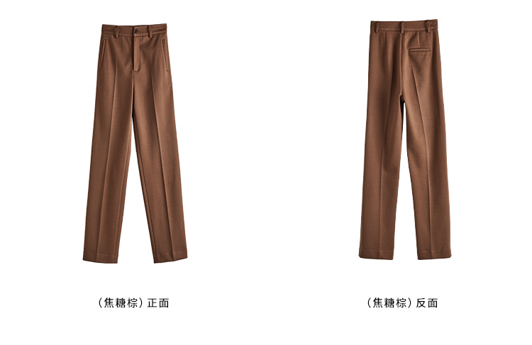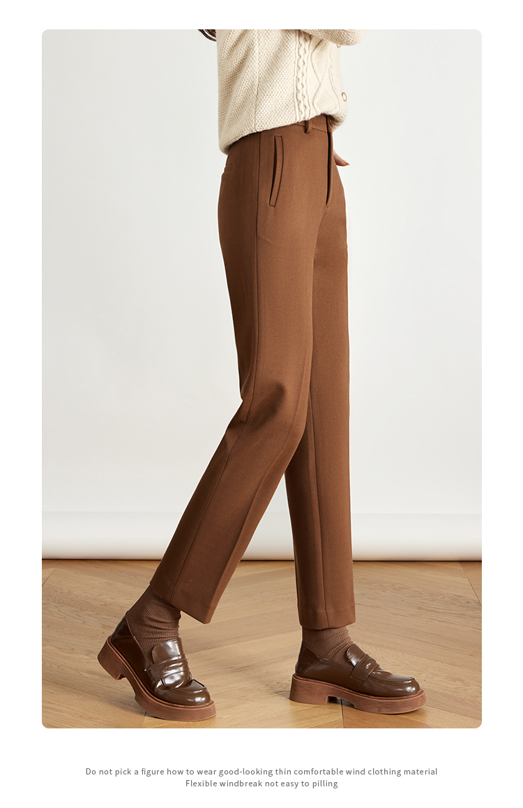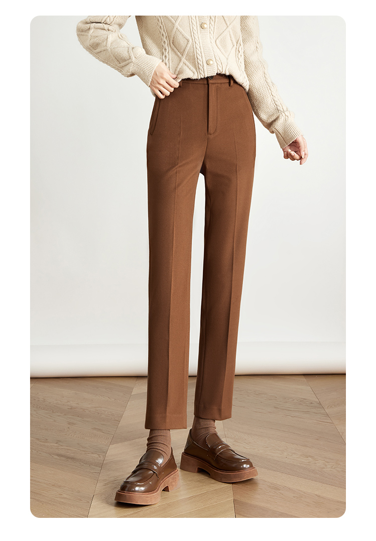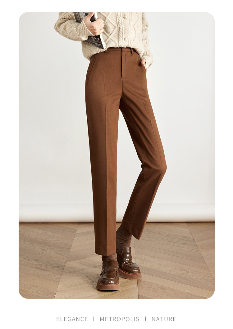【年终特卖】熙世界焦糖色毛呢裤女九分西装裤2025秋冬款加厚小个子直筒裤子