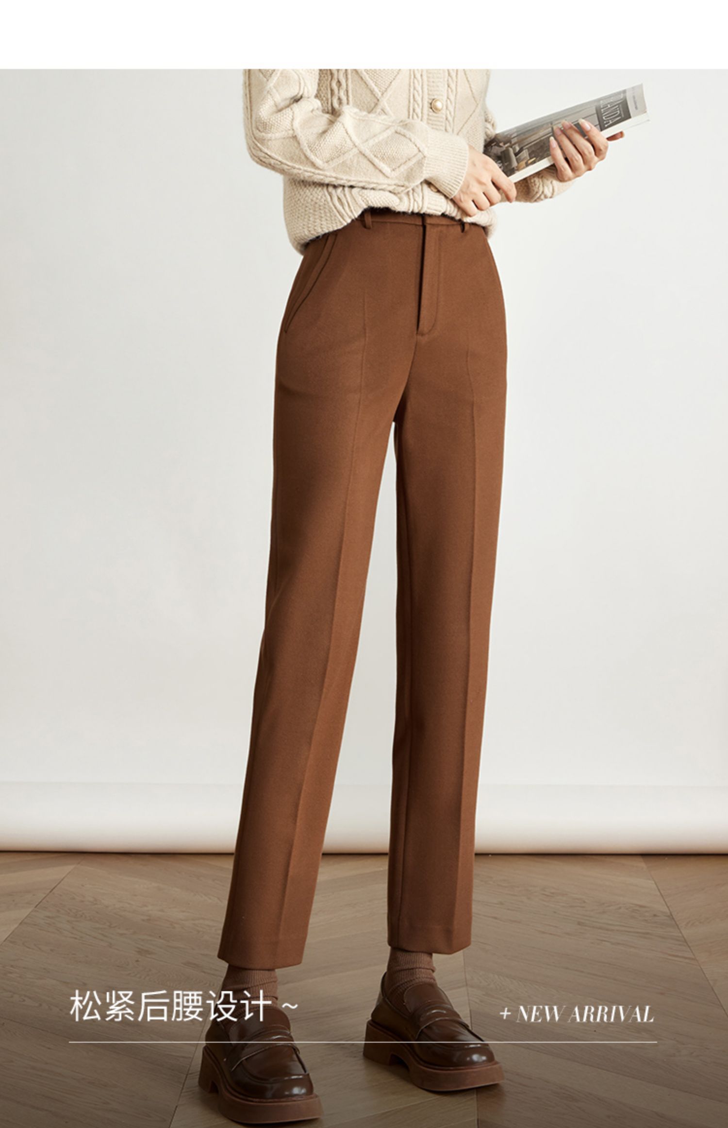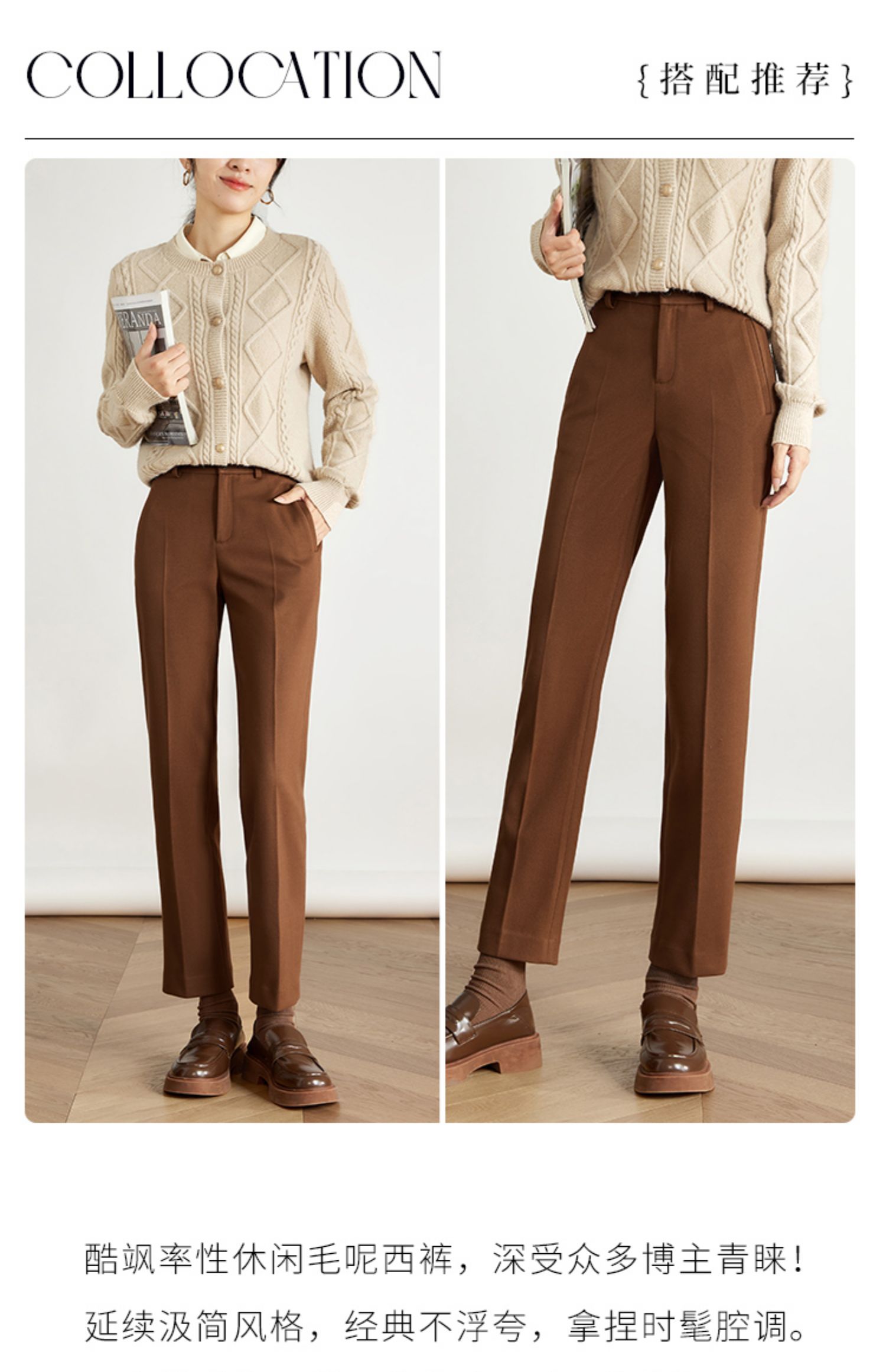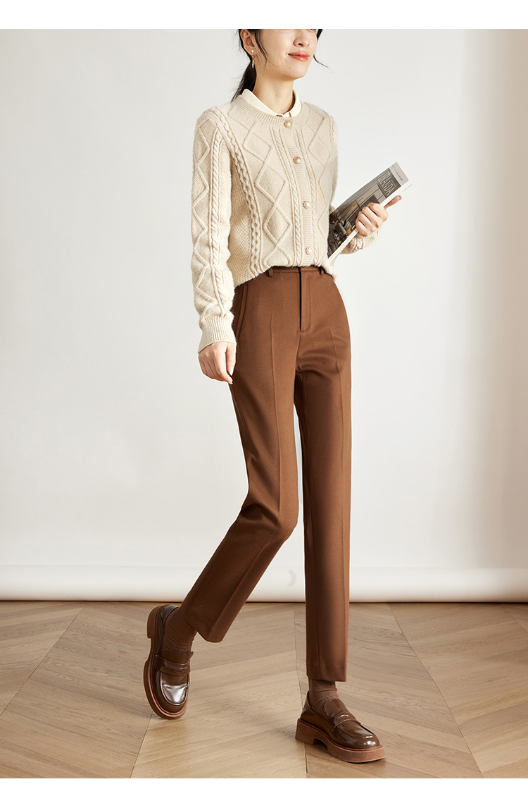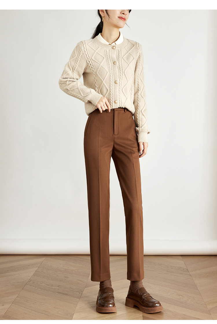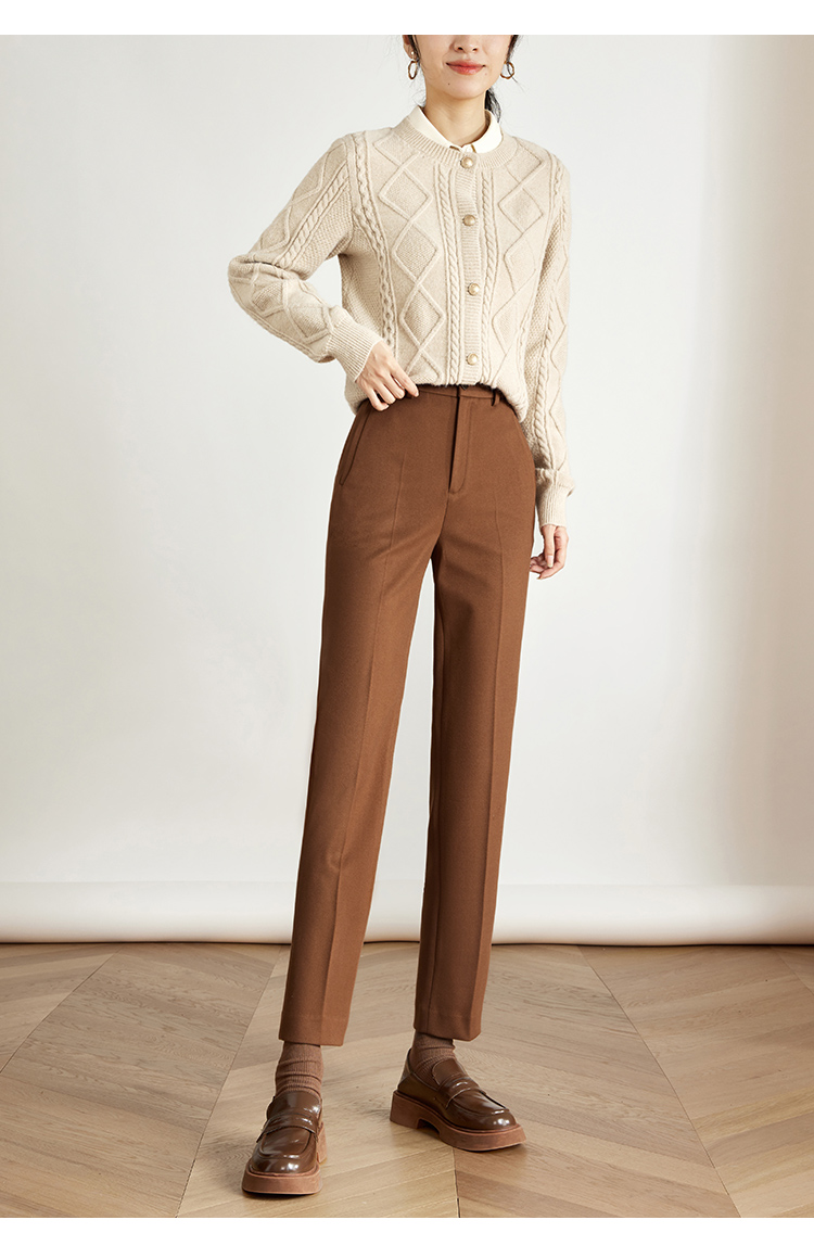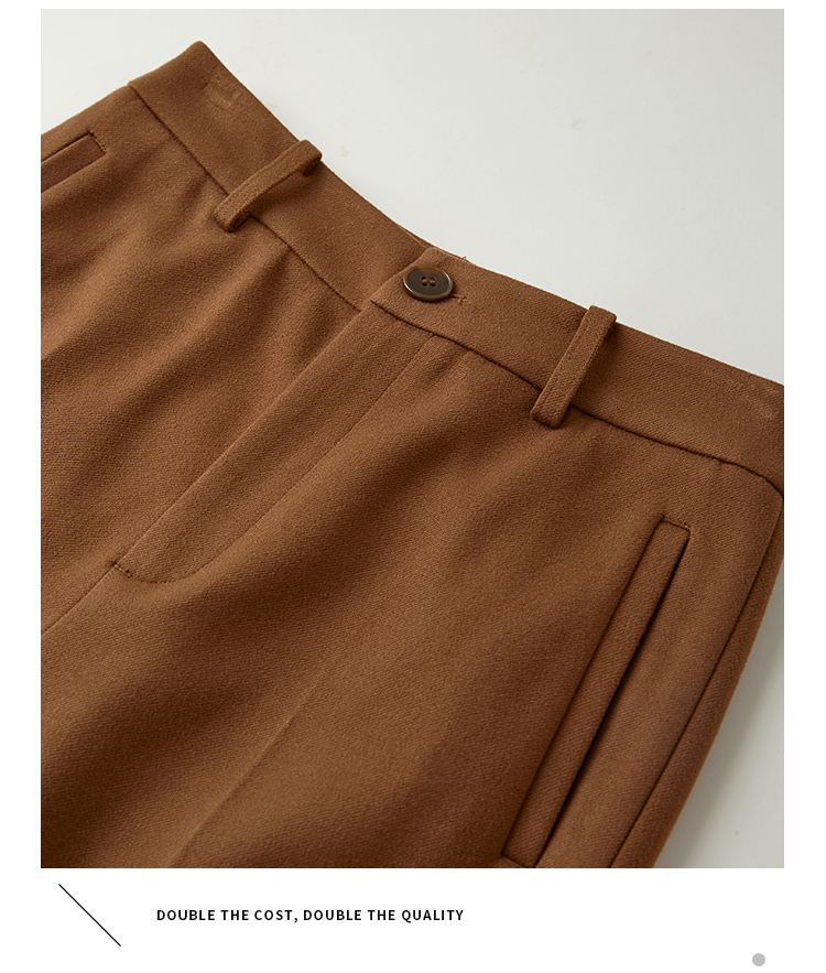 【年终特卖】熙世界焦糖色毛呢裤女九分西装裤2025秋冬款加厚小个子直筒裤子