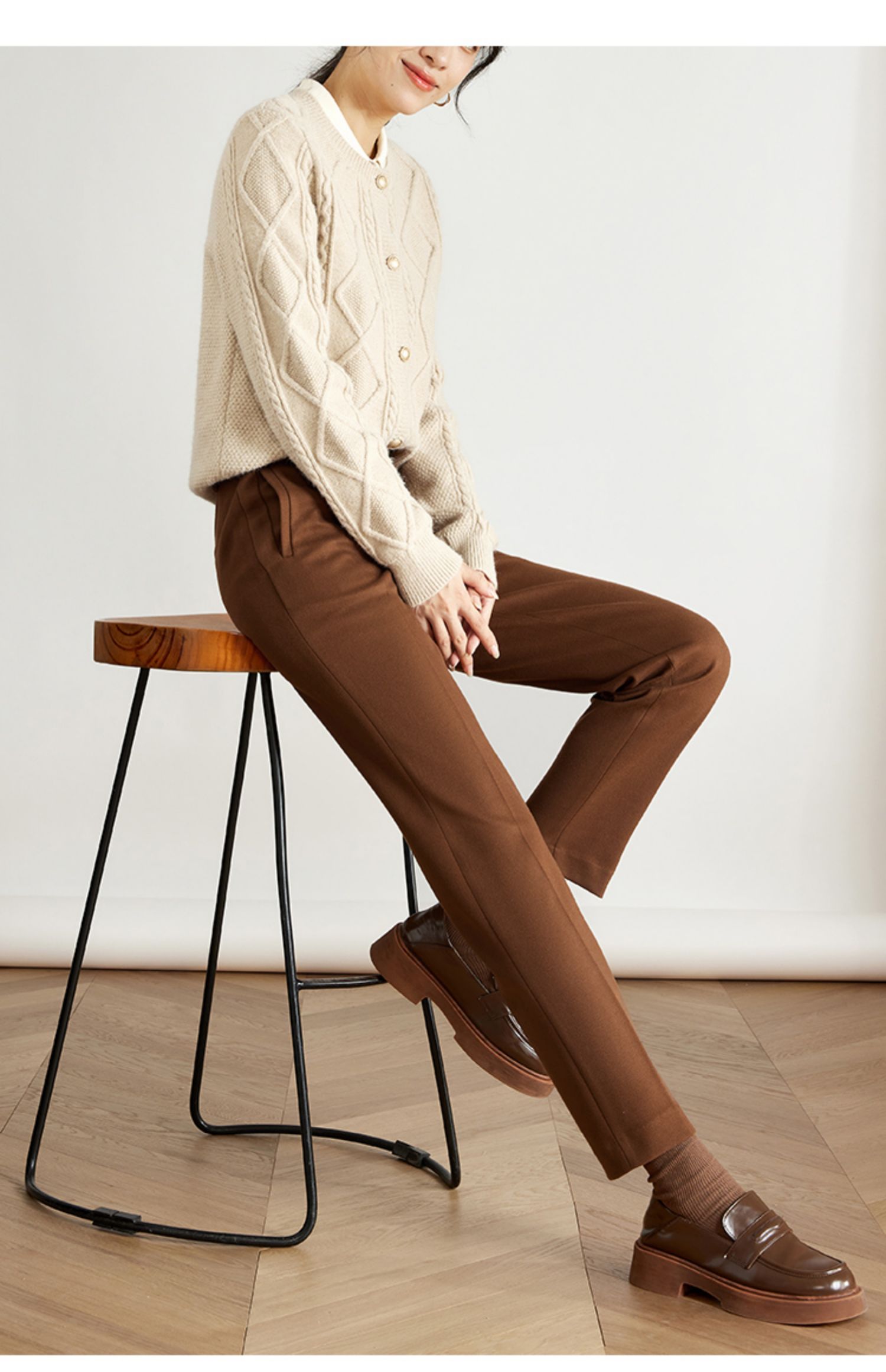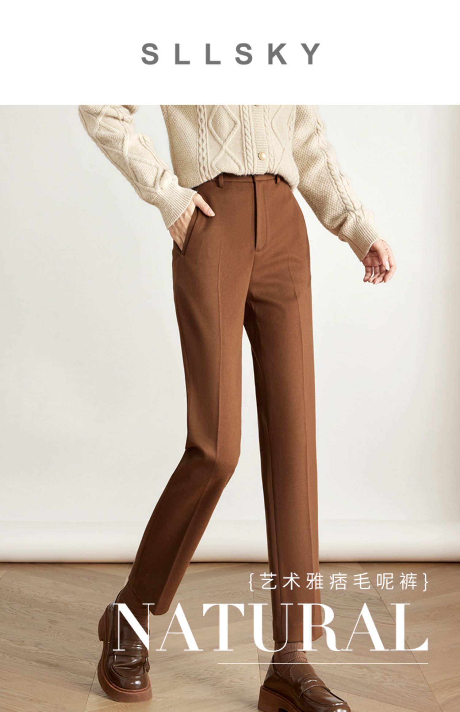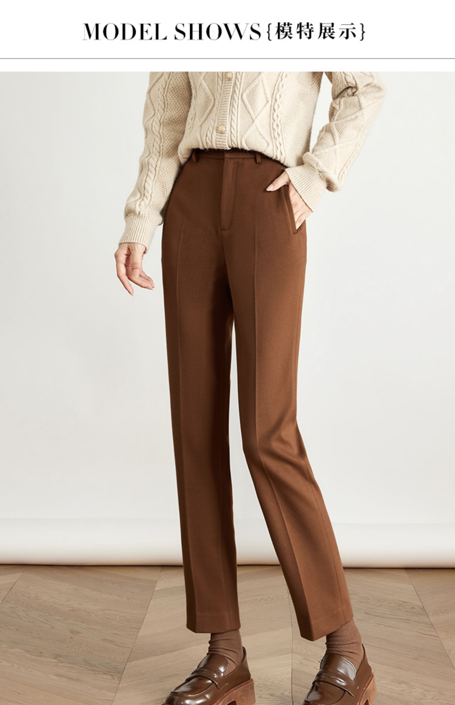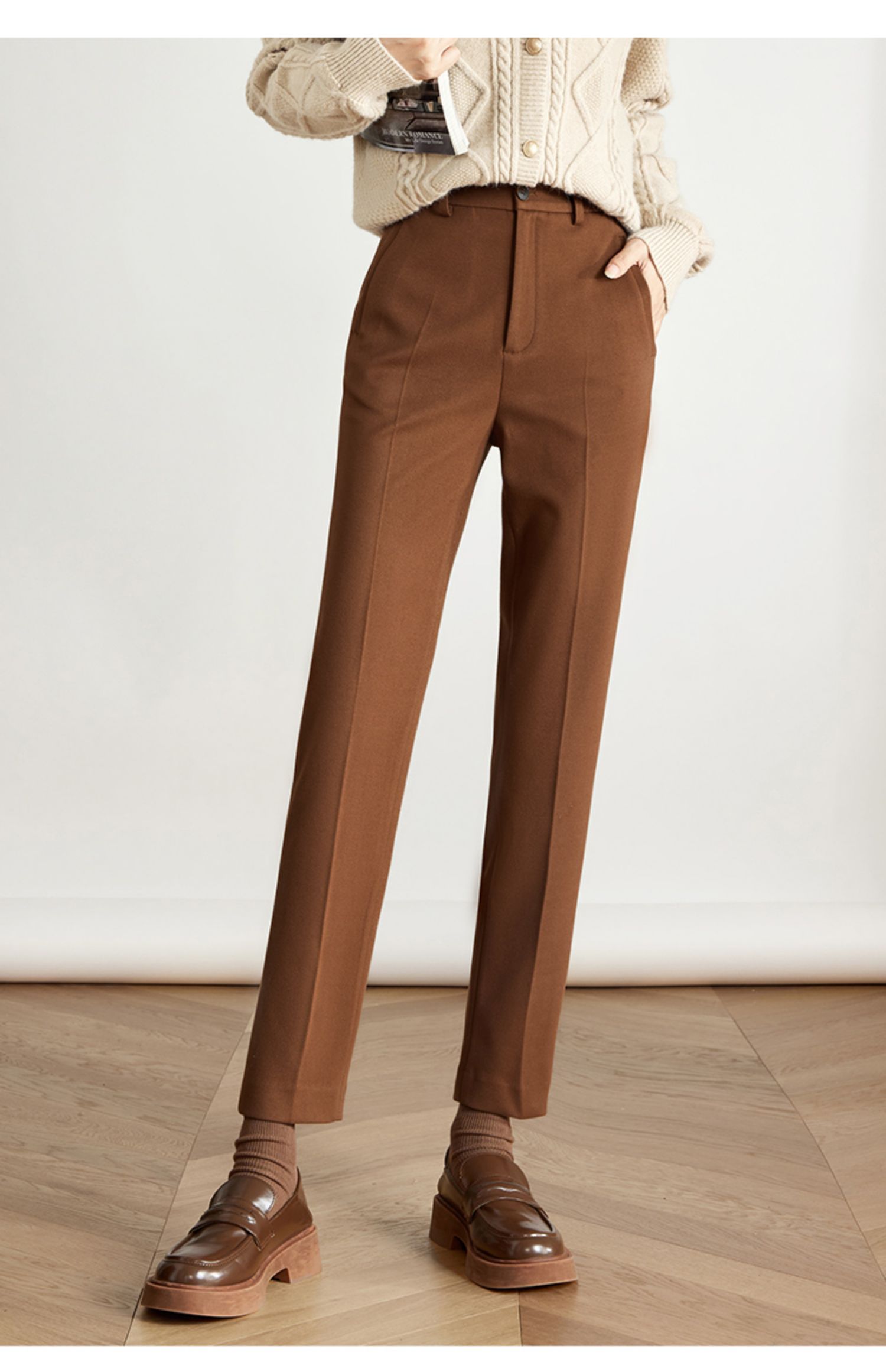【年终特卖】熙世界焦糖色毛呢裤女九分西装裤2025秋冬款加厚小个子直筒裤子