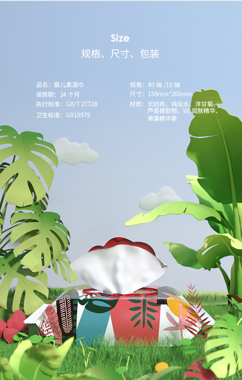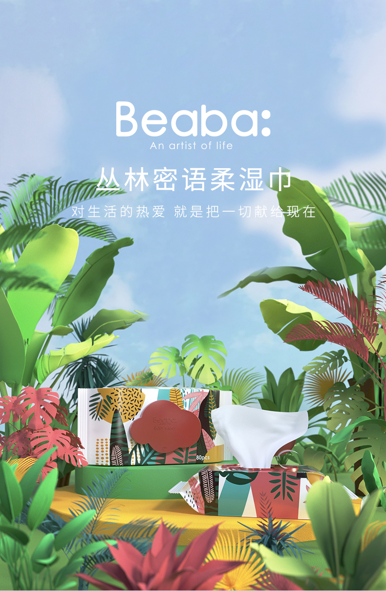 BEABA宝宝丛林湿巾新生婴儿湿纸巾家用大包装80抽*12包