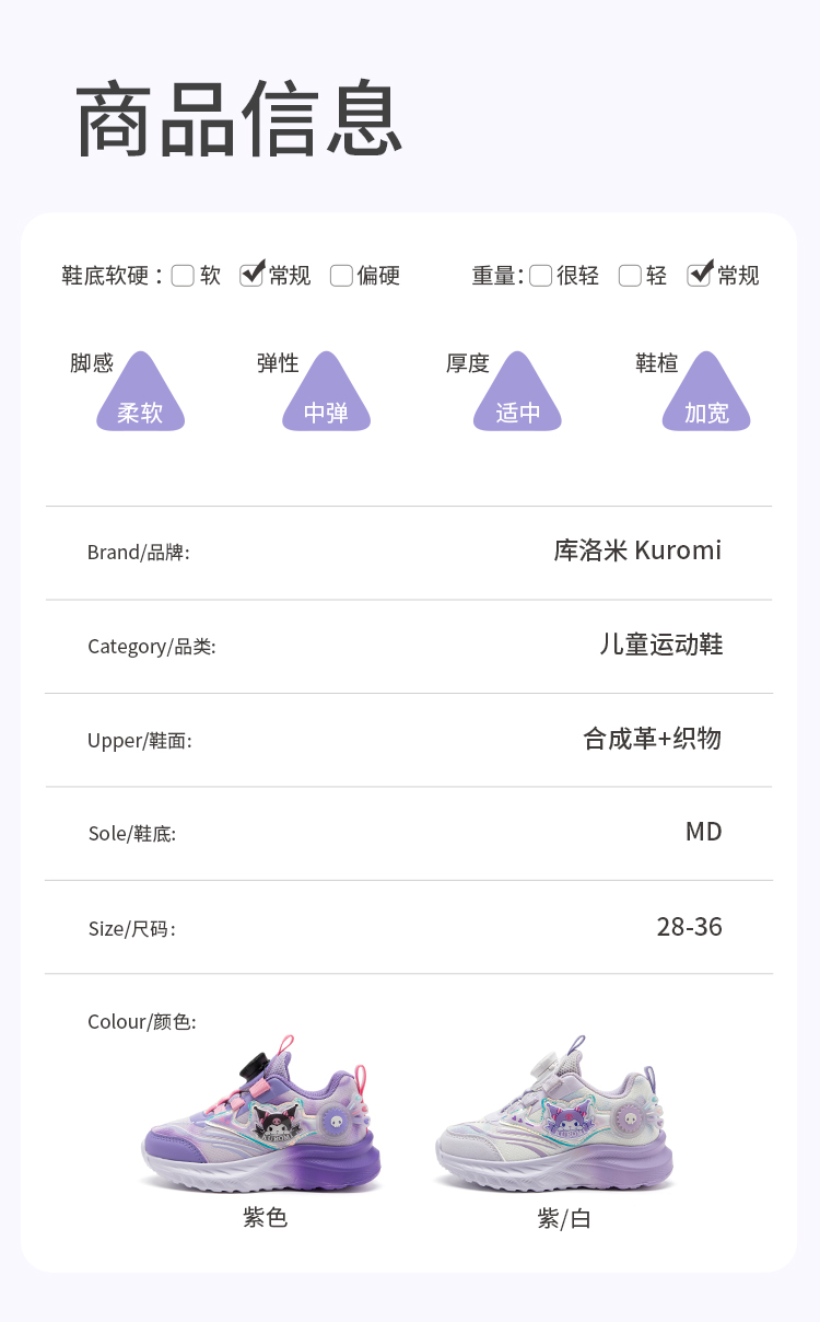 hellokitty童鞋春秋库洛米儿童运动鞋28-36码 KU5536933