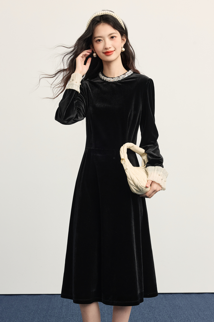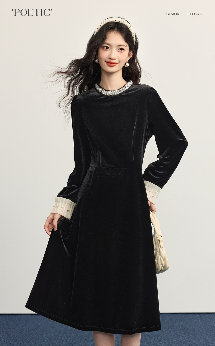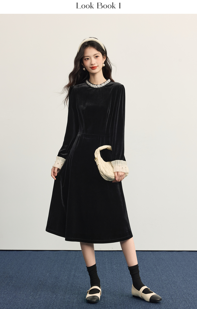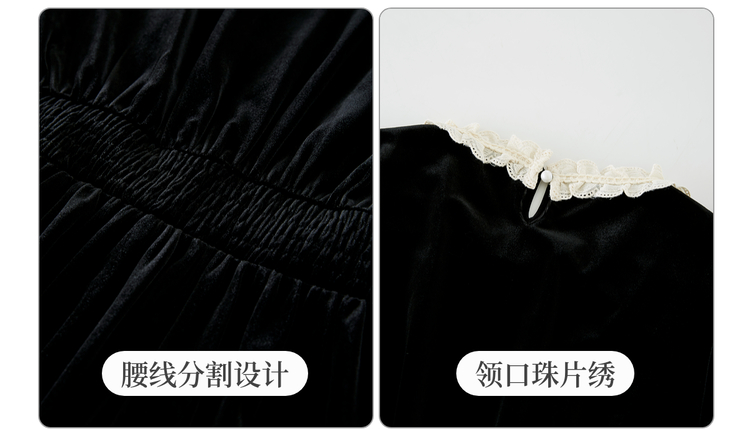 【10/29新品】熙世界法式千金感丝绒连衣裙女2025秋冬新款优雅气质赫本风小黑裙