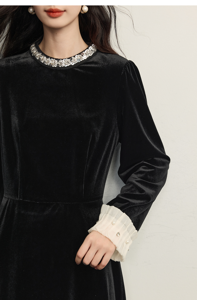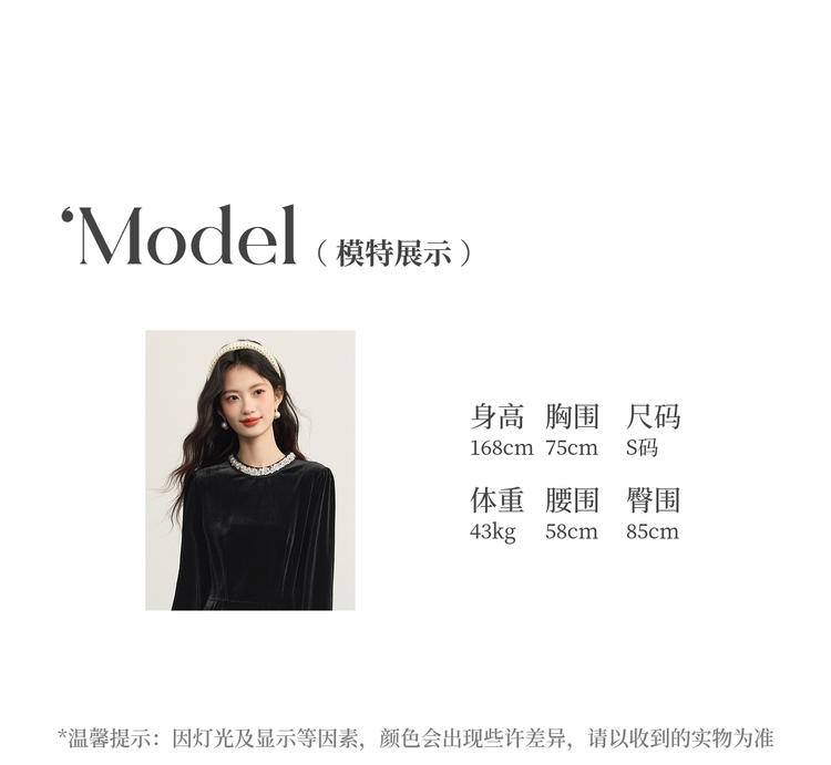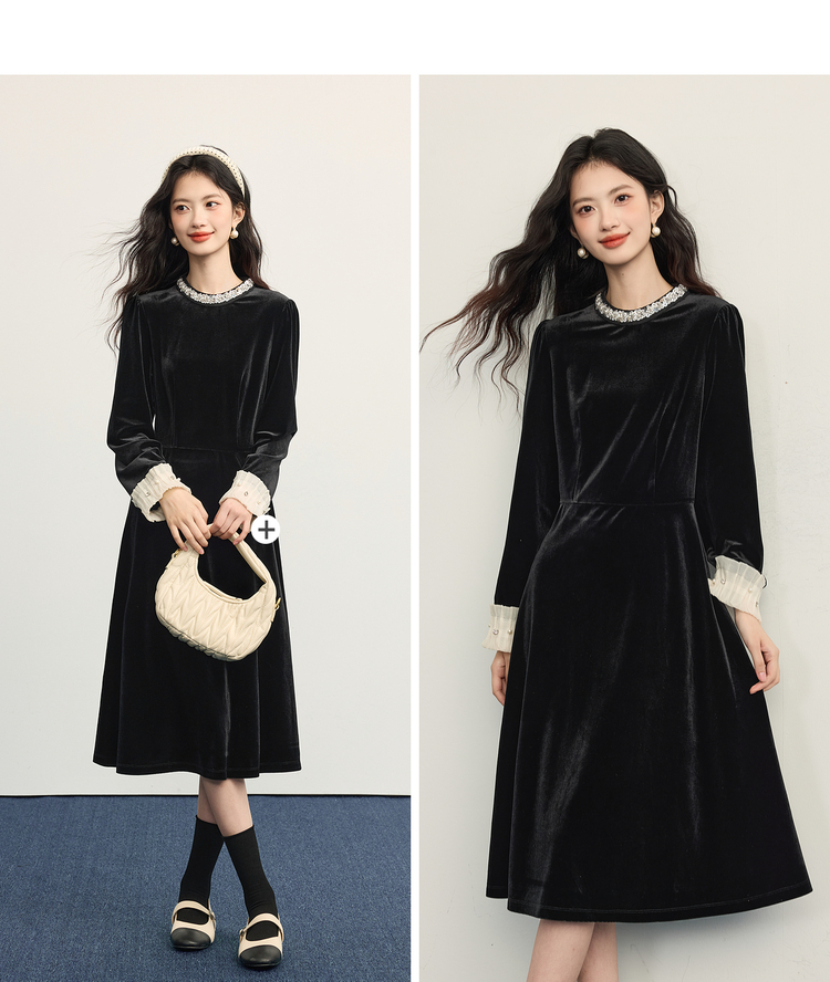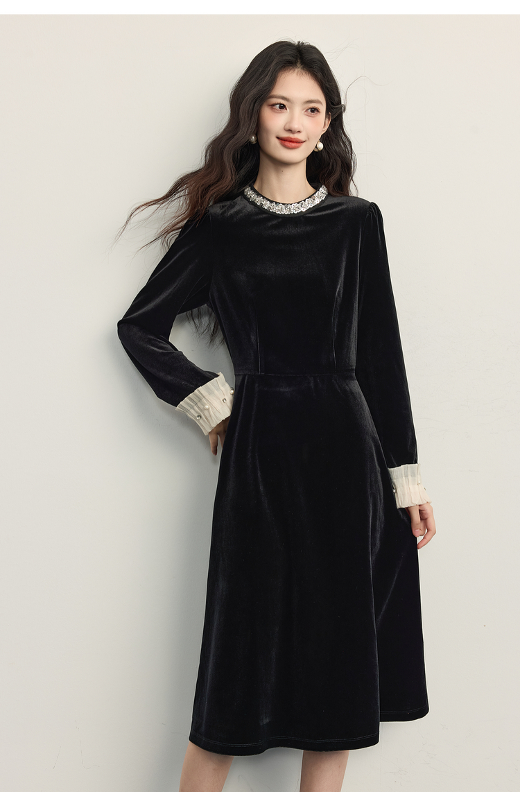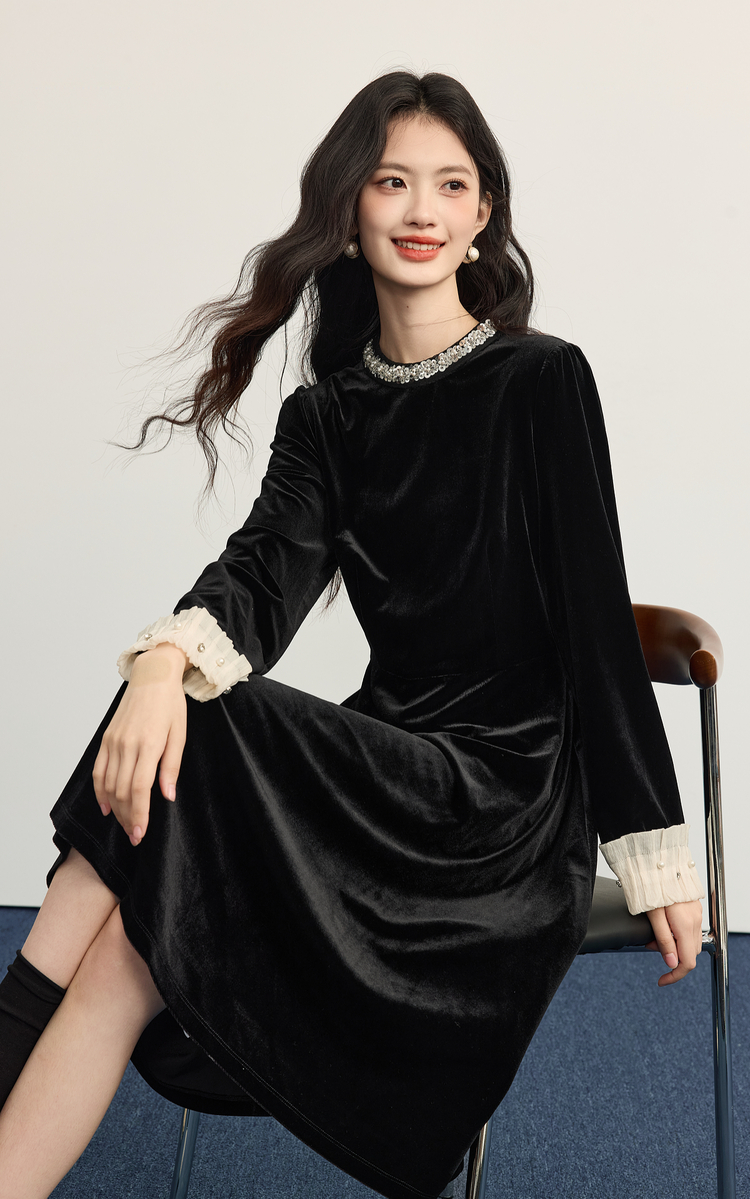 【10/29新品】熙世界法式千金感丝绒连衣裙女2025秋冬新款优雅气质赫本风小黑裙