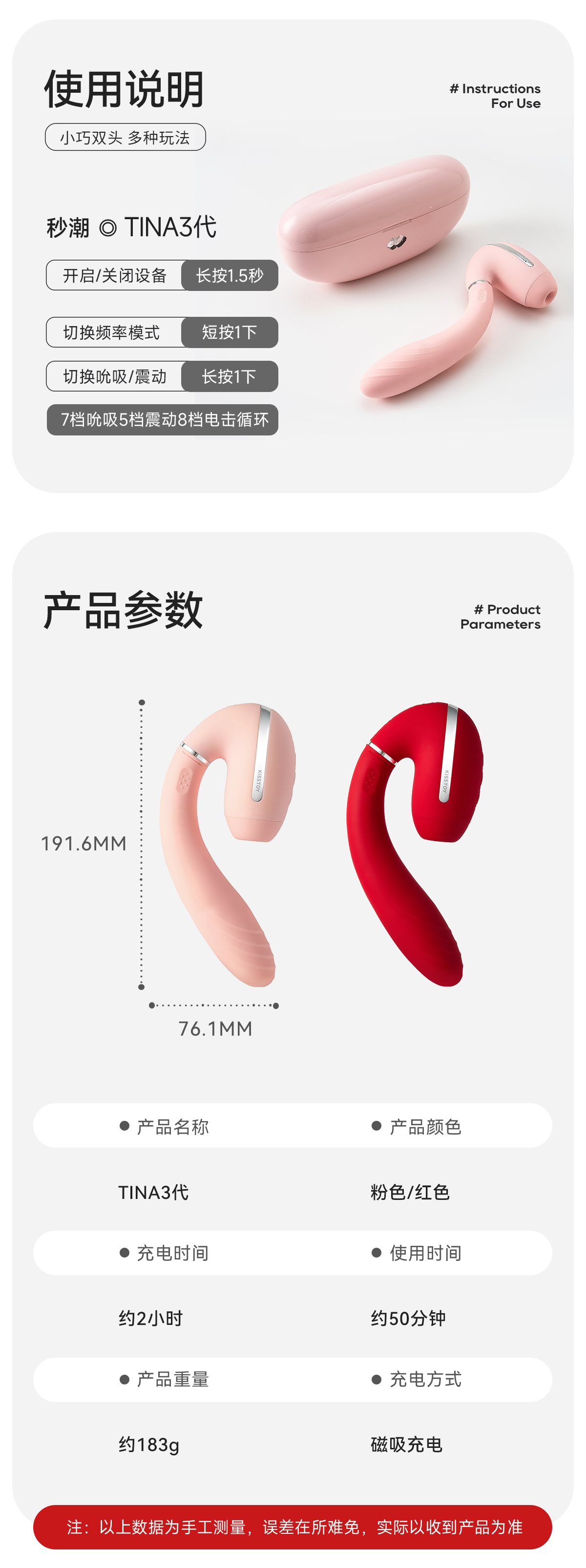 【新品】秒潮TINA3 C点吮吸电击G点伸缩震动180°旋转便携消毒充电仓