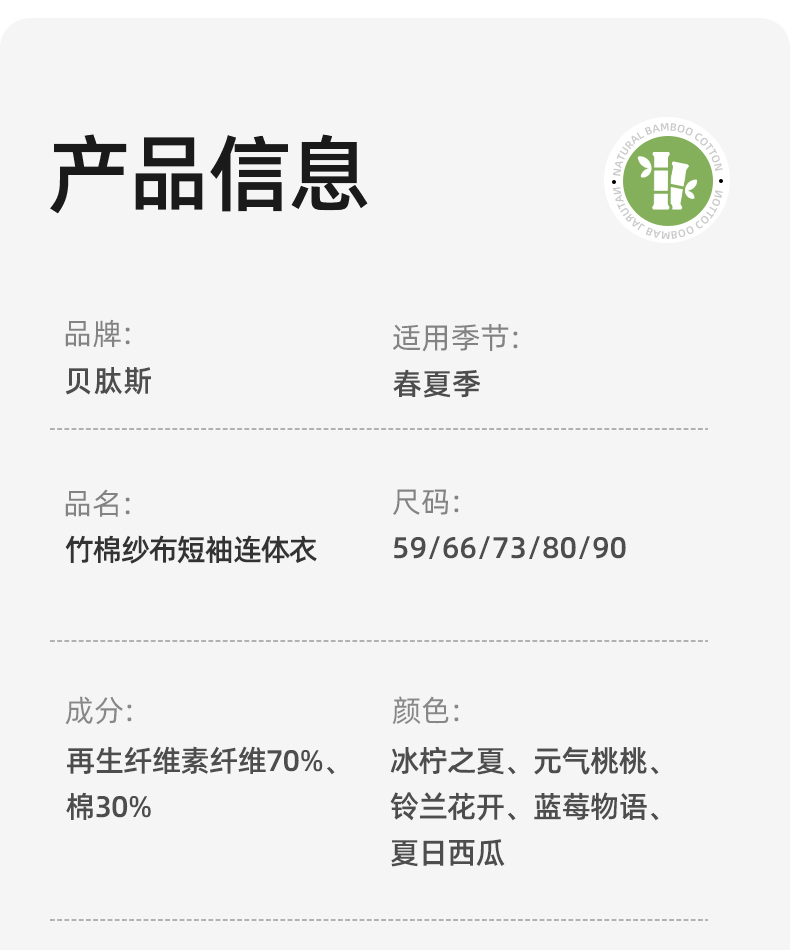 贝肽斯新生婴儿衣服春夏季薄款竹棉连体衣2025新款宝宝短袖连身衣