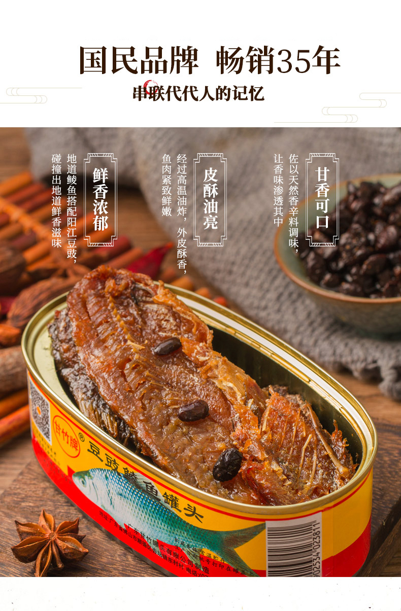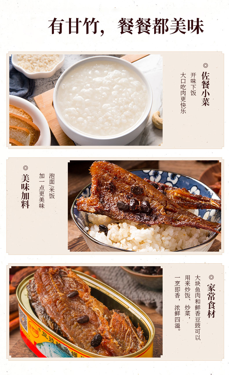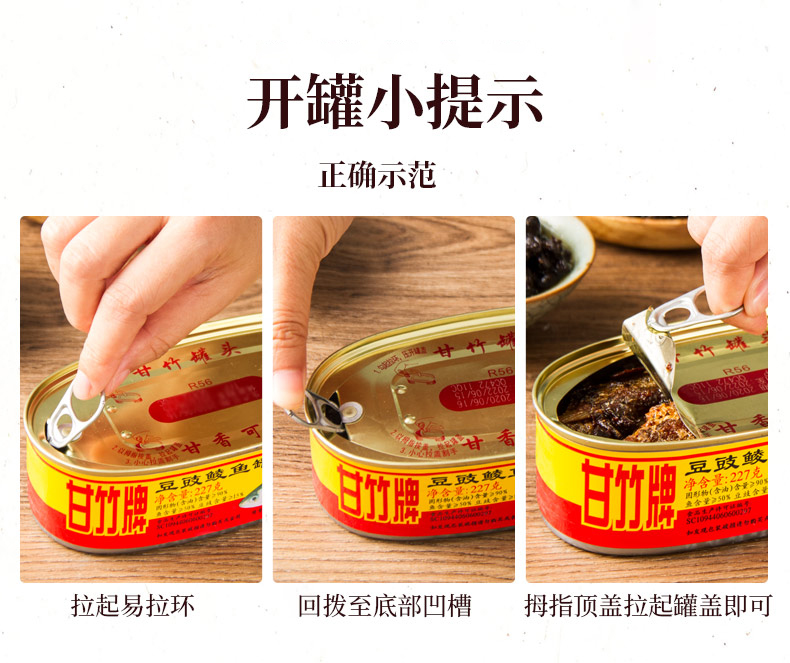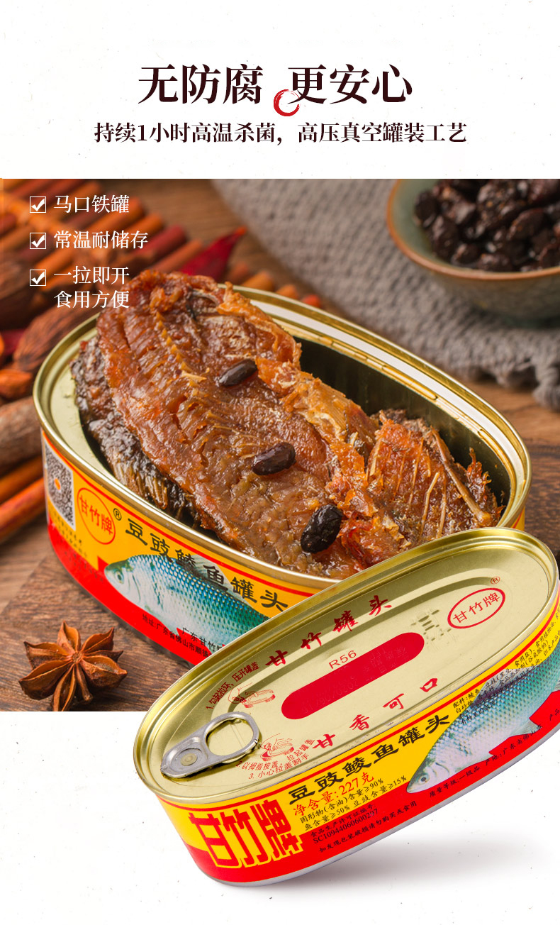 甘竹牌 豆豉鲮鱼 罐头227g*3罐 即食鱼罐头 广东老式 鲮鱼肉 特产下饭菜 甘竹食品 包邮