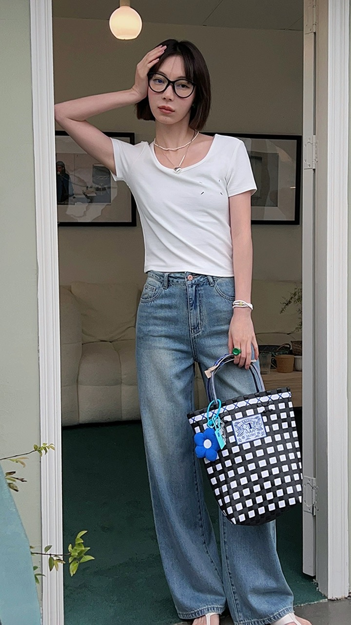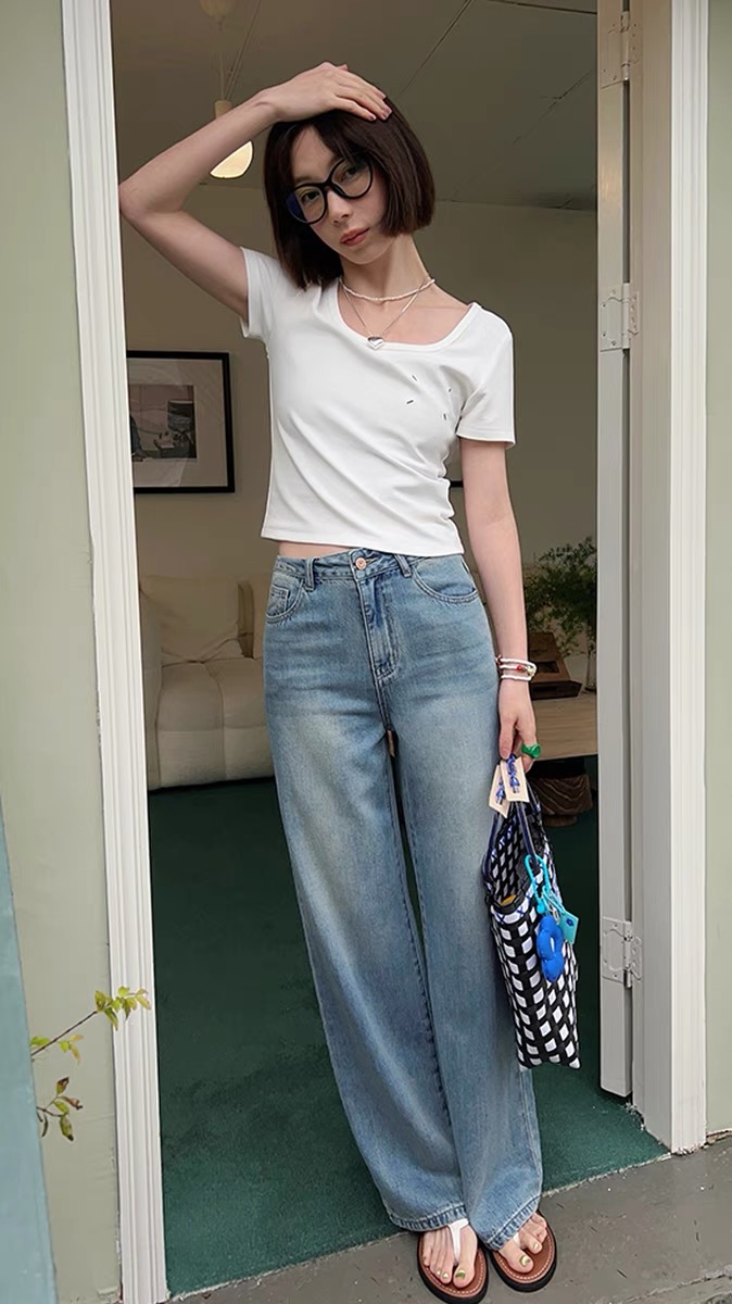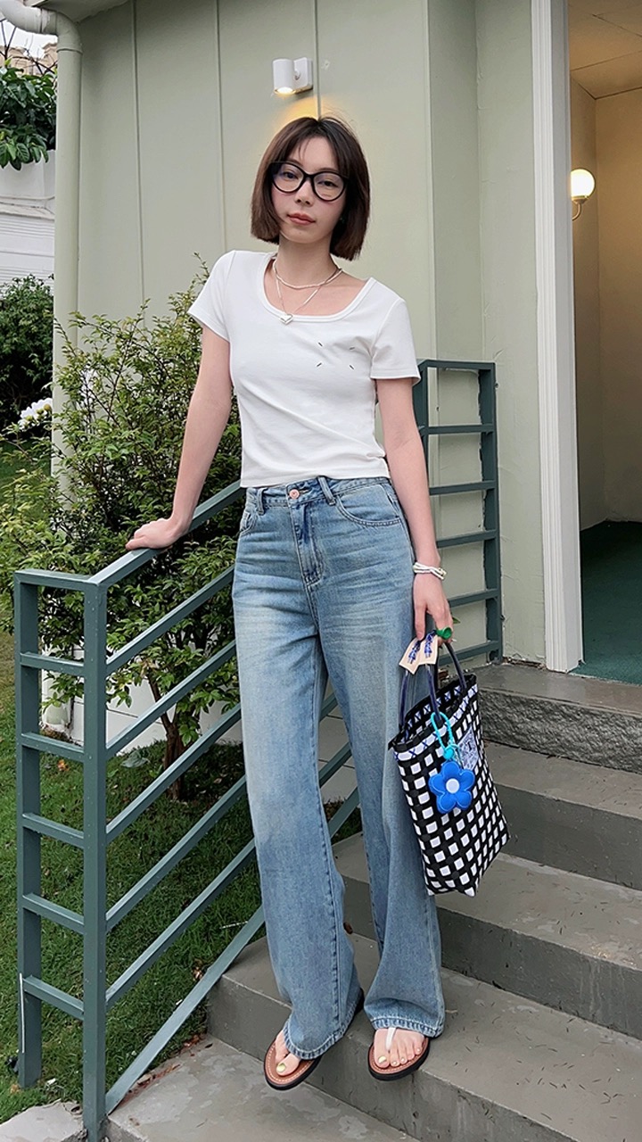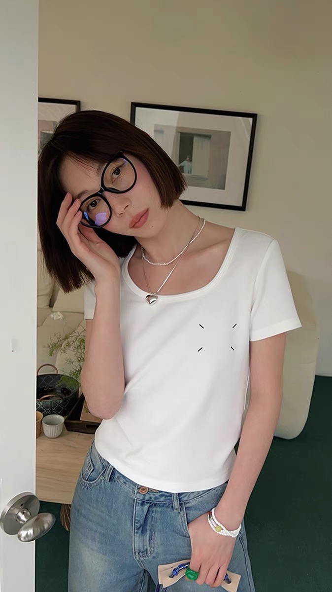 T7090S # 米白 S 一件简约而不失单调的上衣 采用了大方形领口设计 扩大领口范围 露出精致的锁骨 有型有气质