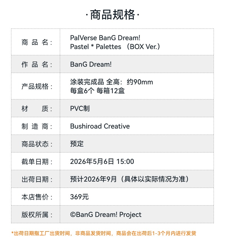 【GSC预售定金】PalVerse BanG Dream! Pastel*Palettes (BOX Ver.)附官方特典
