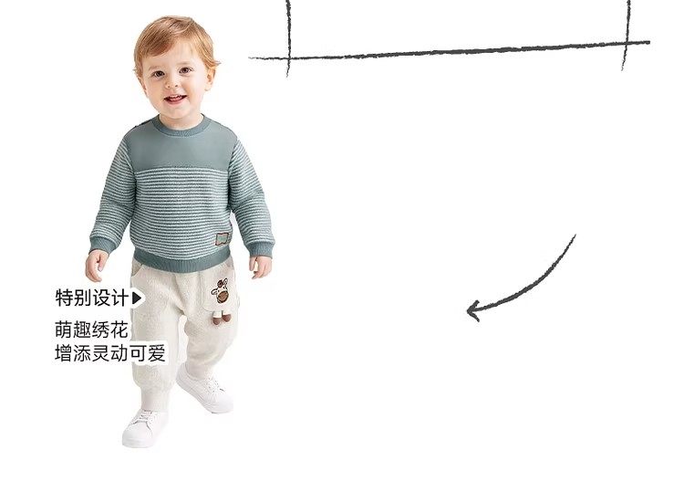 英氏儿童裤子秋冬宝宝休闲裤双层运动裤童装长裤YRKCJ42289A