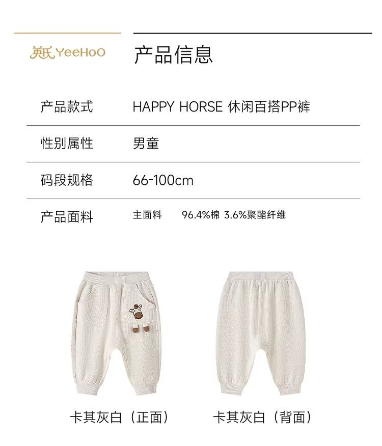 英氏儿童裤子男童屁屁裤春夏新款男宝宝小童pp裤外穿YRKPJ1S006A