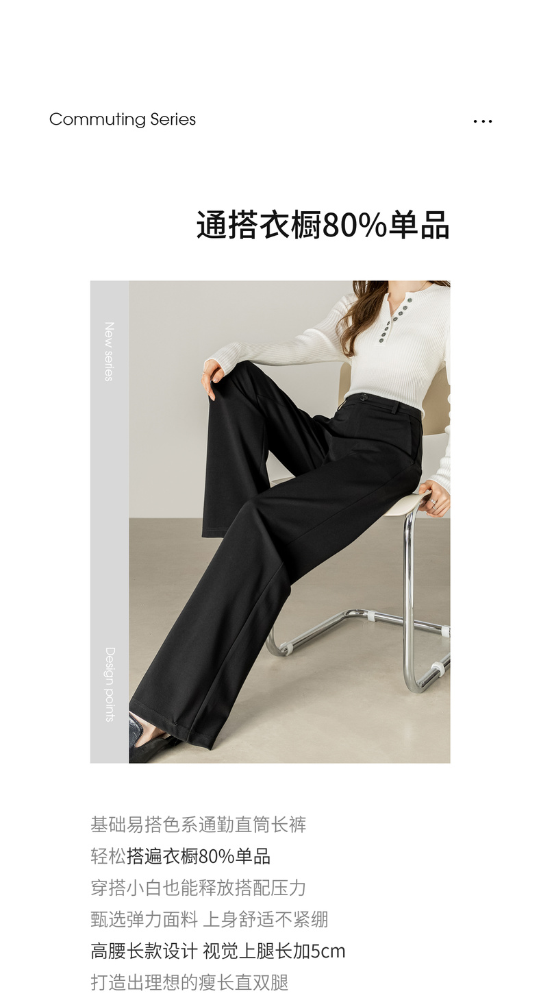【内购】【易搭配】都市通勤高腰设计遮肉显瘦弹力直筒长裤-153K59396