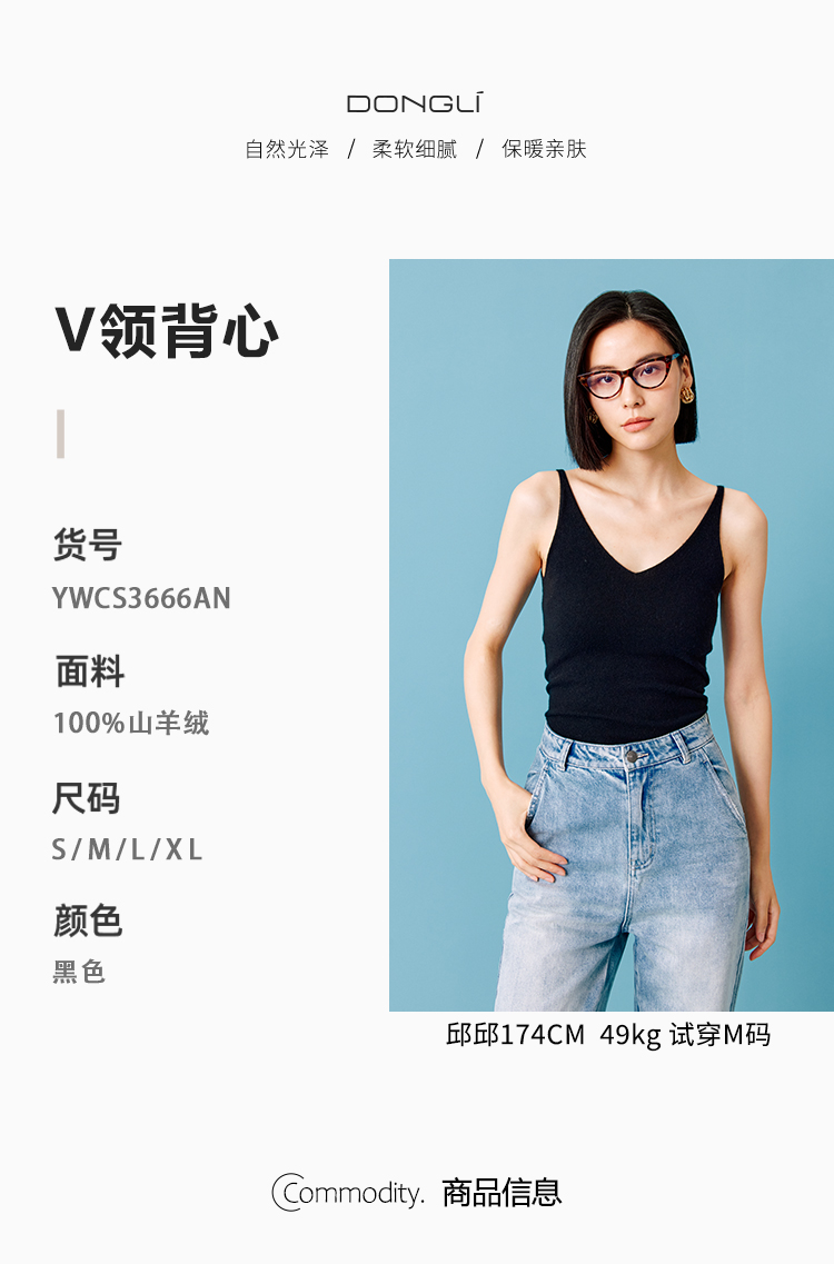 东黎 • 山羊绒女士秋冬V领吊带背心 3666