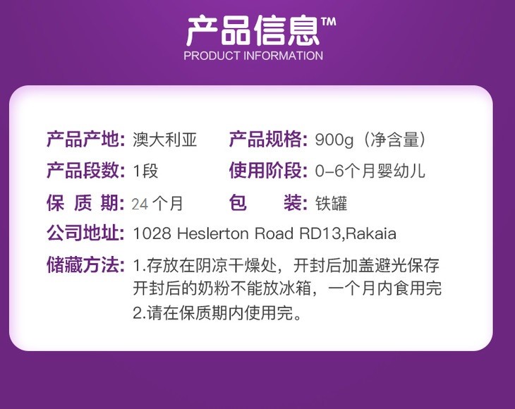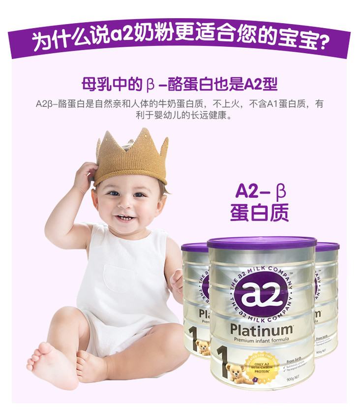 澳洲A2奶粉婴幼儿白金 婴幼儿奶粉1段 宝宝奶粉900g(27年2月)【保税直发】