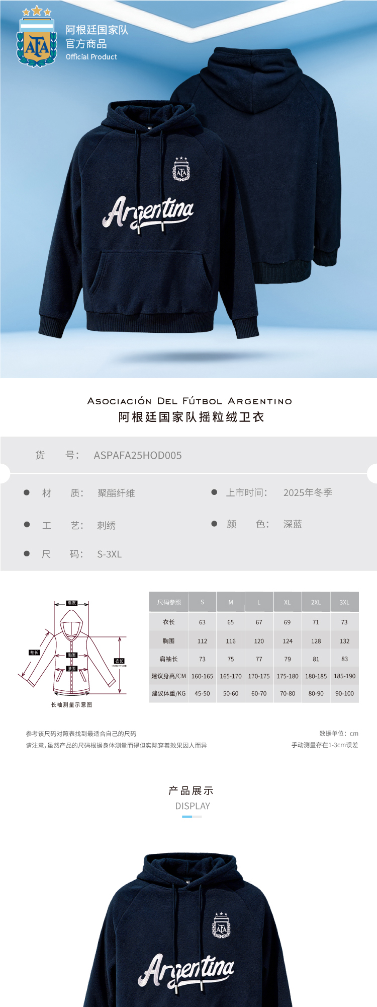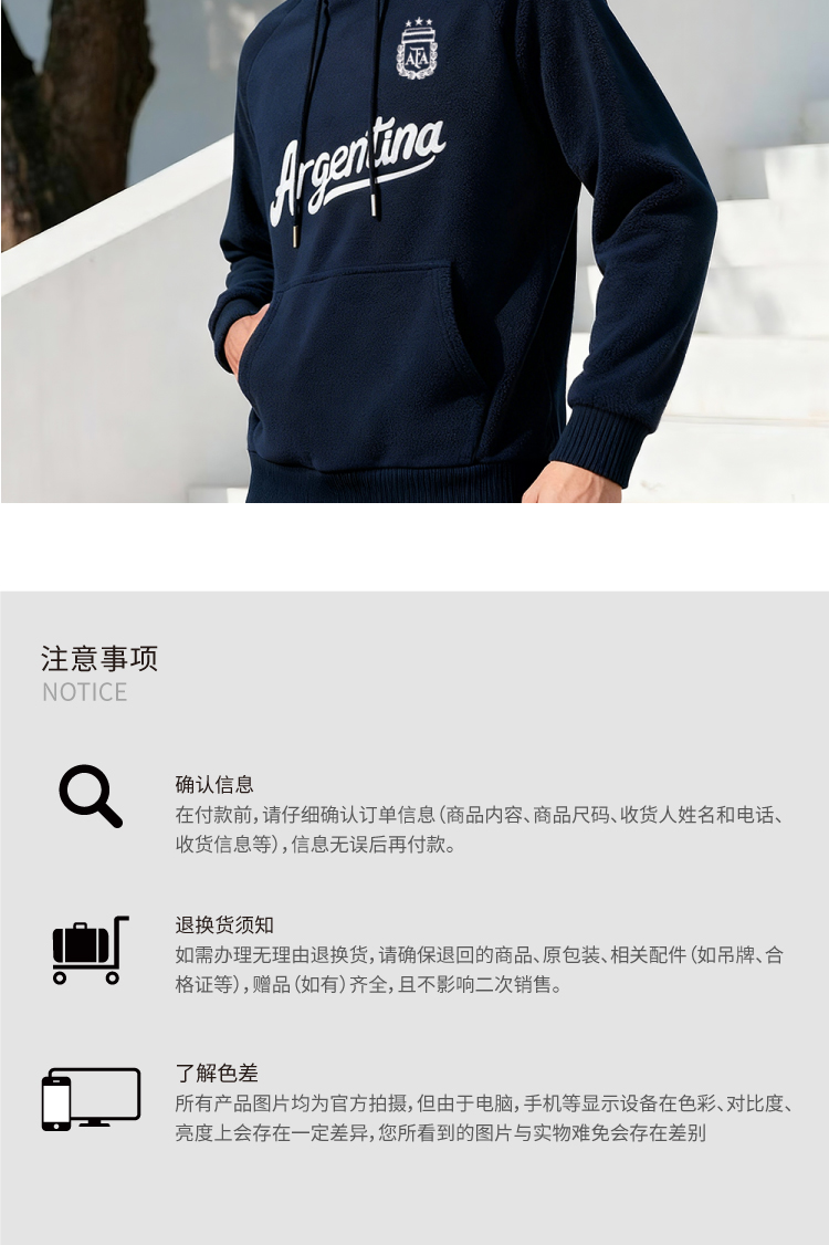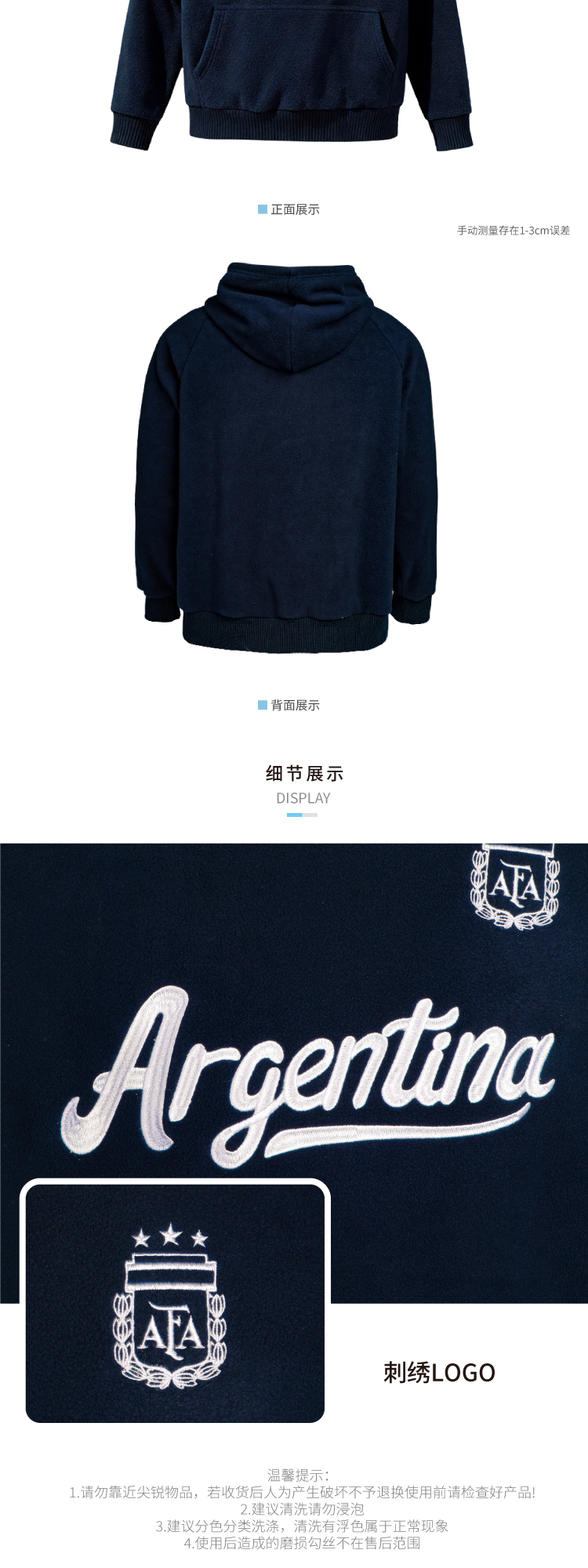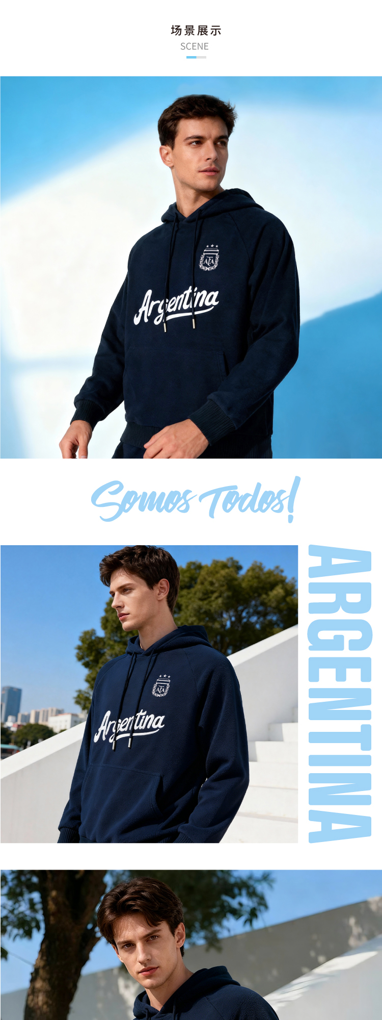 【官方正版】阿根廷国 家队 | 深蓝色摇粒绒卫衣秋冬新款保暖帽衫