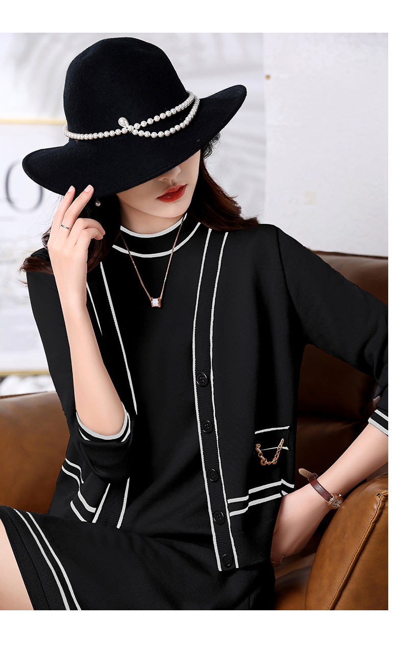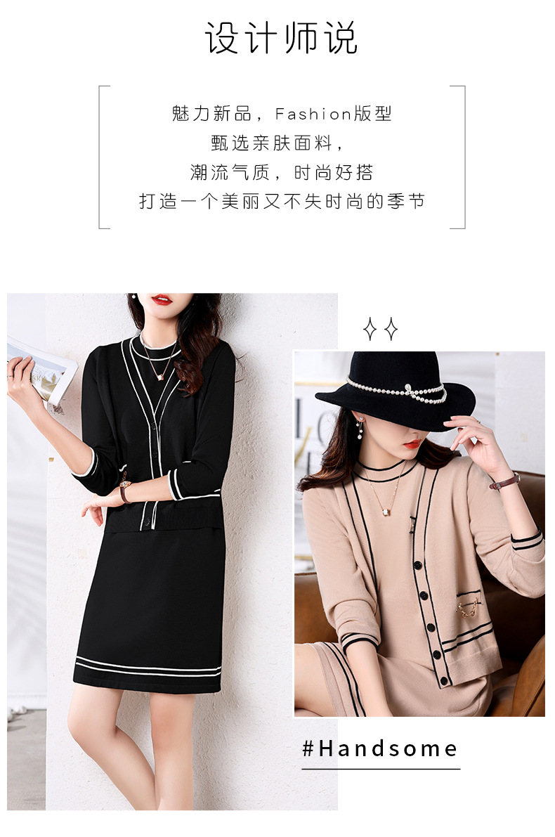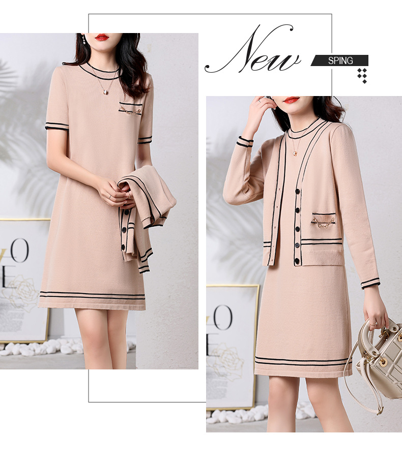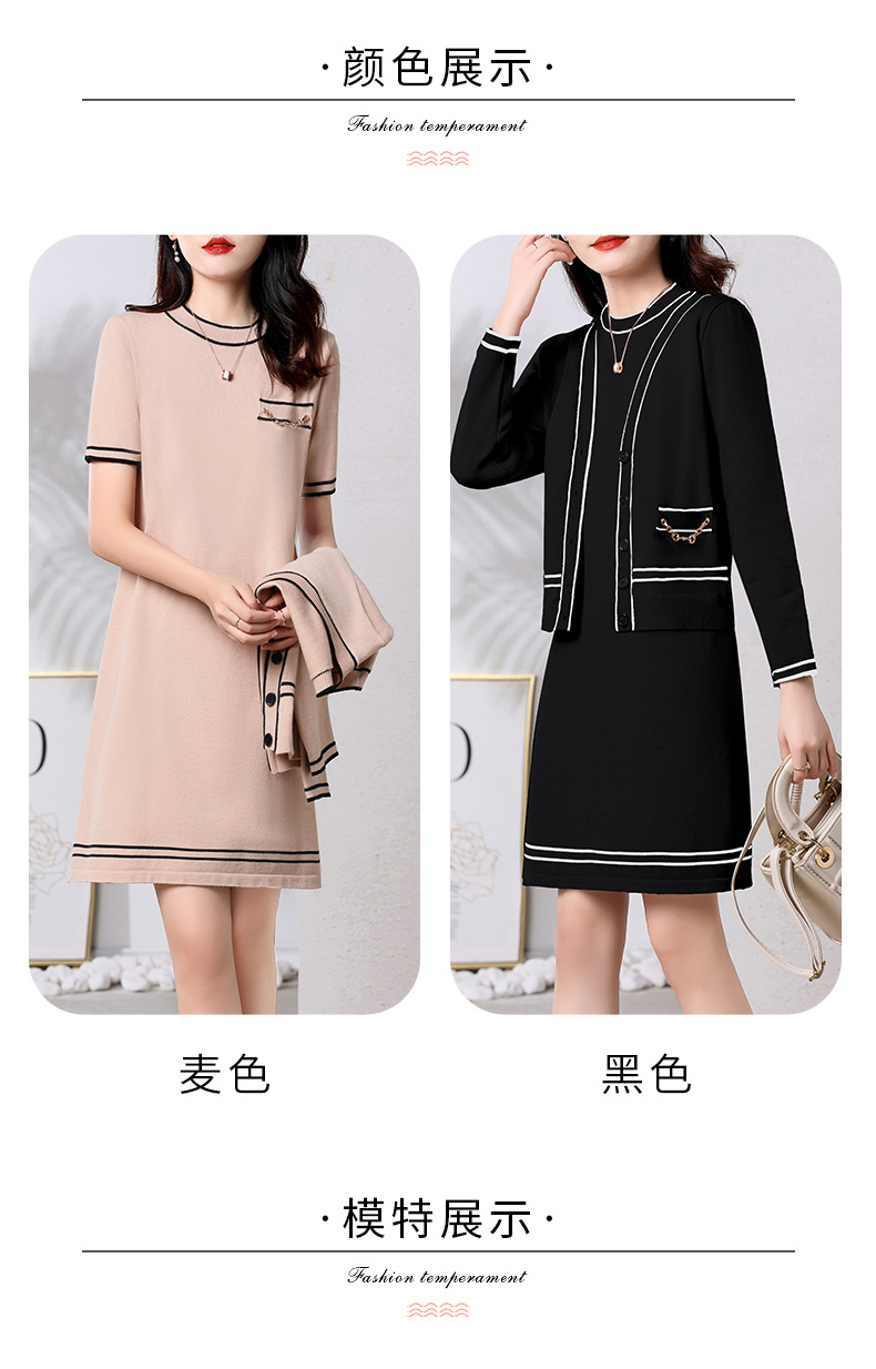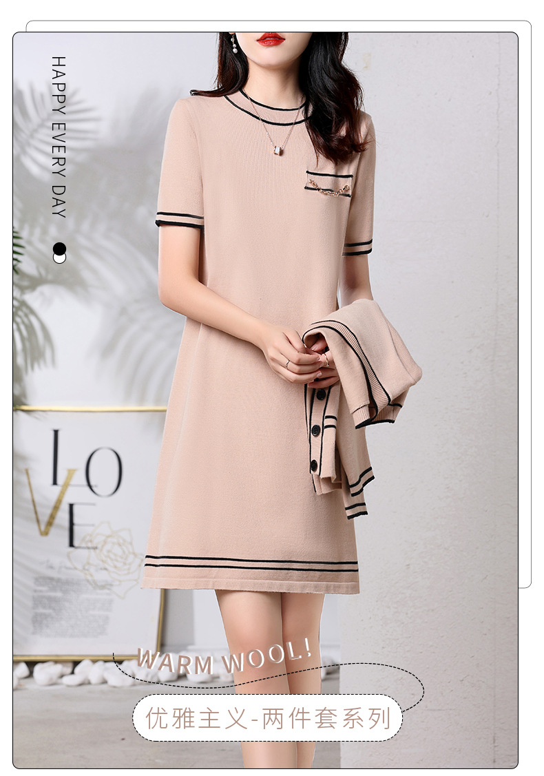 气质淑女风短袖毛衣裙,配手工链条开衫两件套 HR-YBER2272