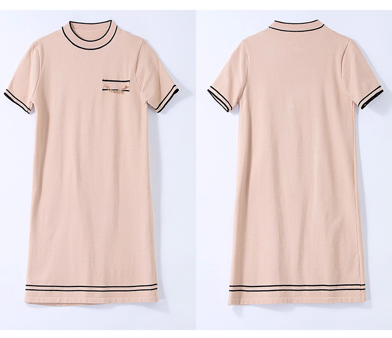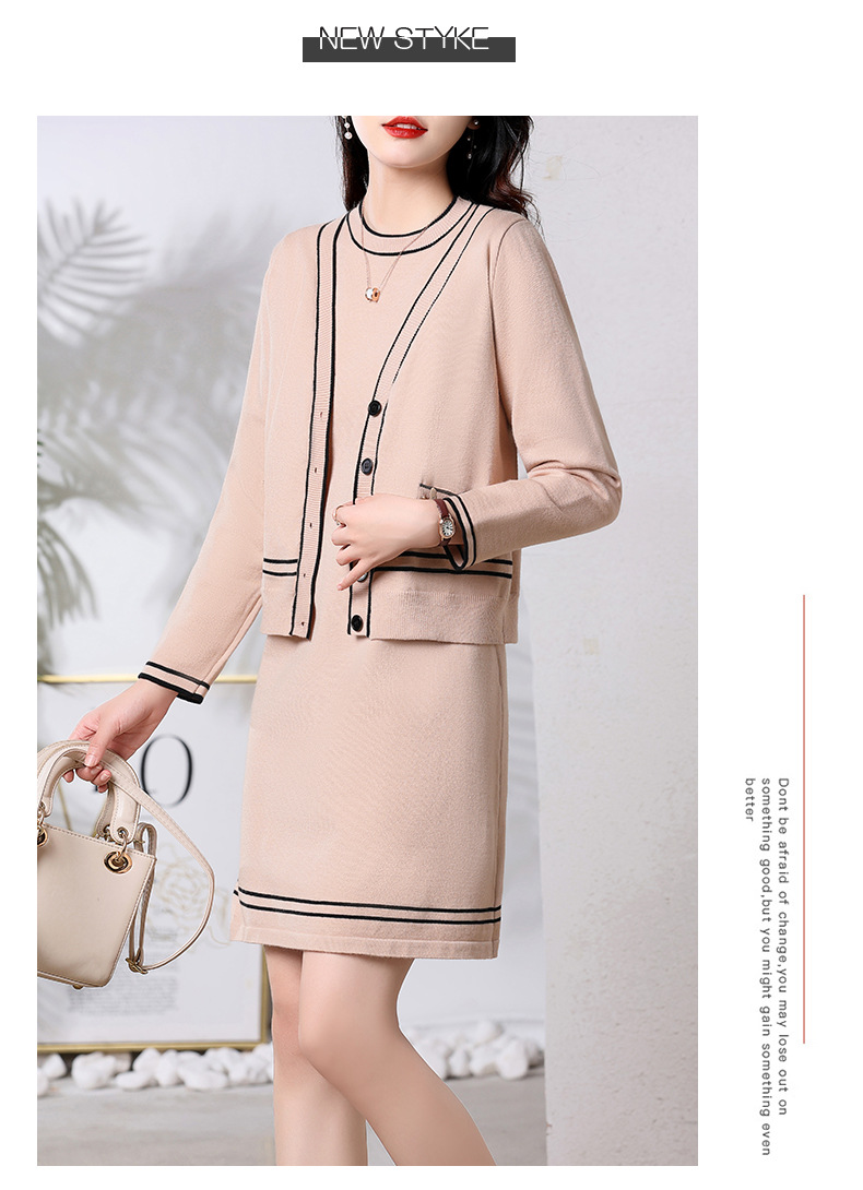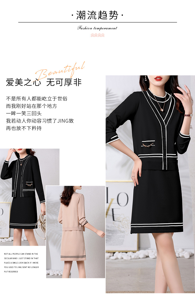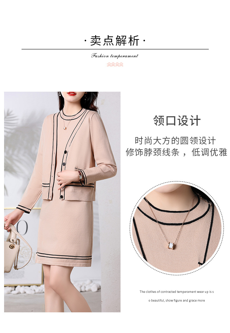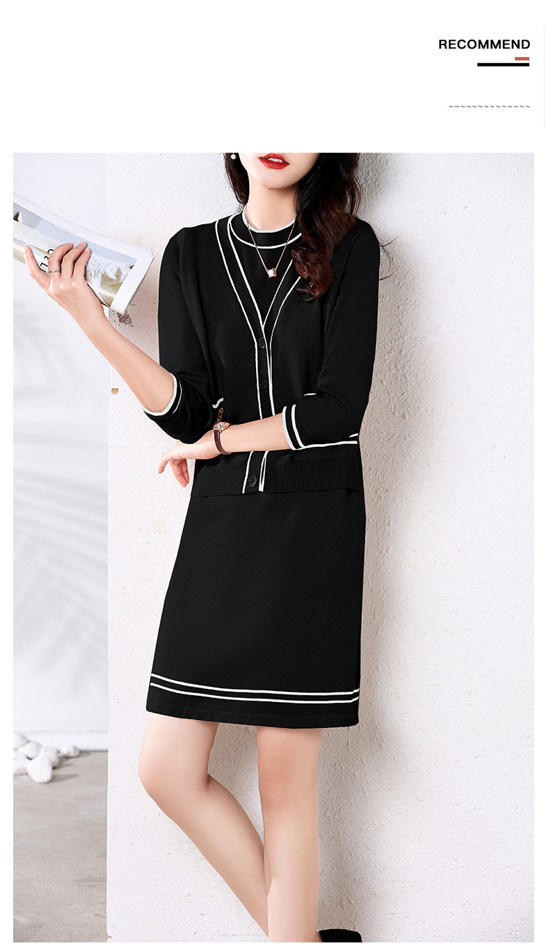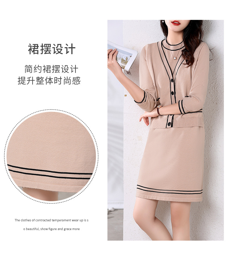 气质淑女风短袖毛衣裙,配手工链条开衫两件套 HR-YBER2272
