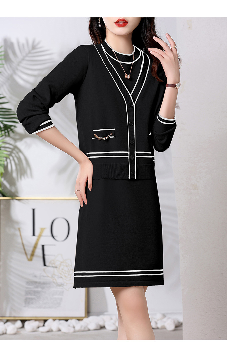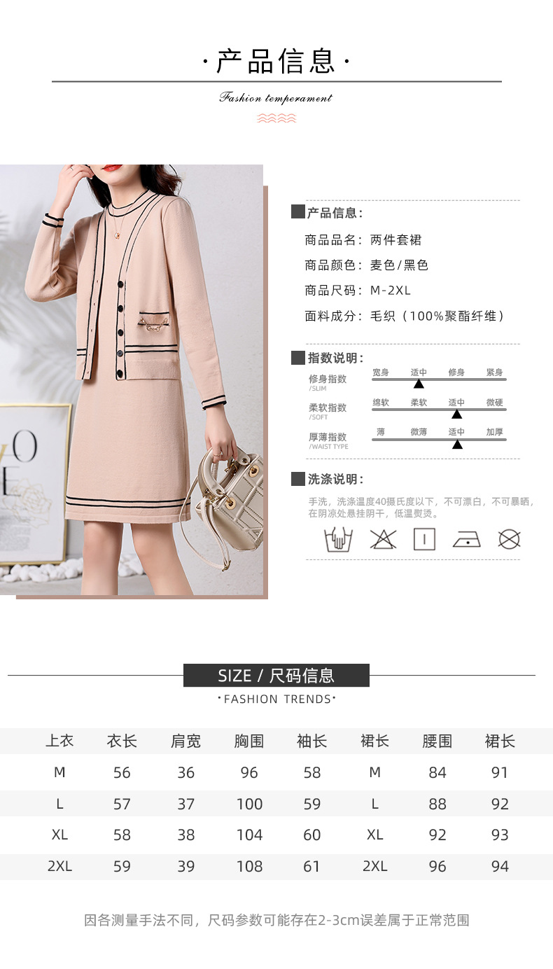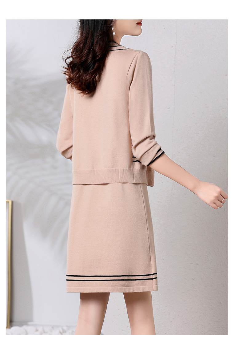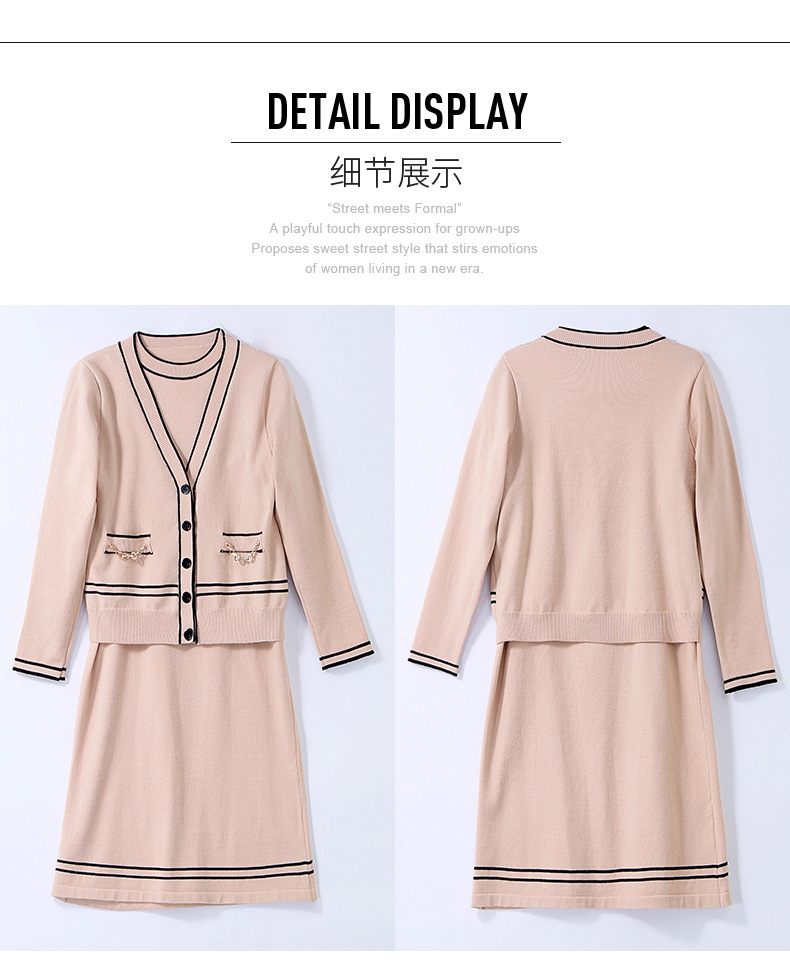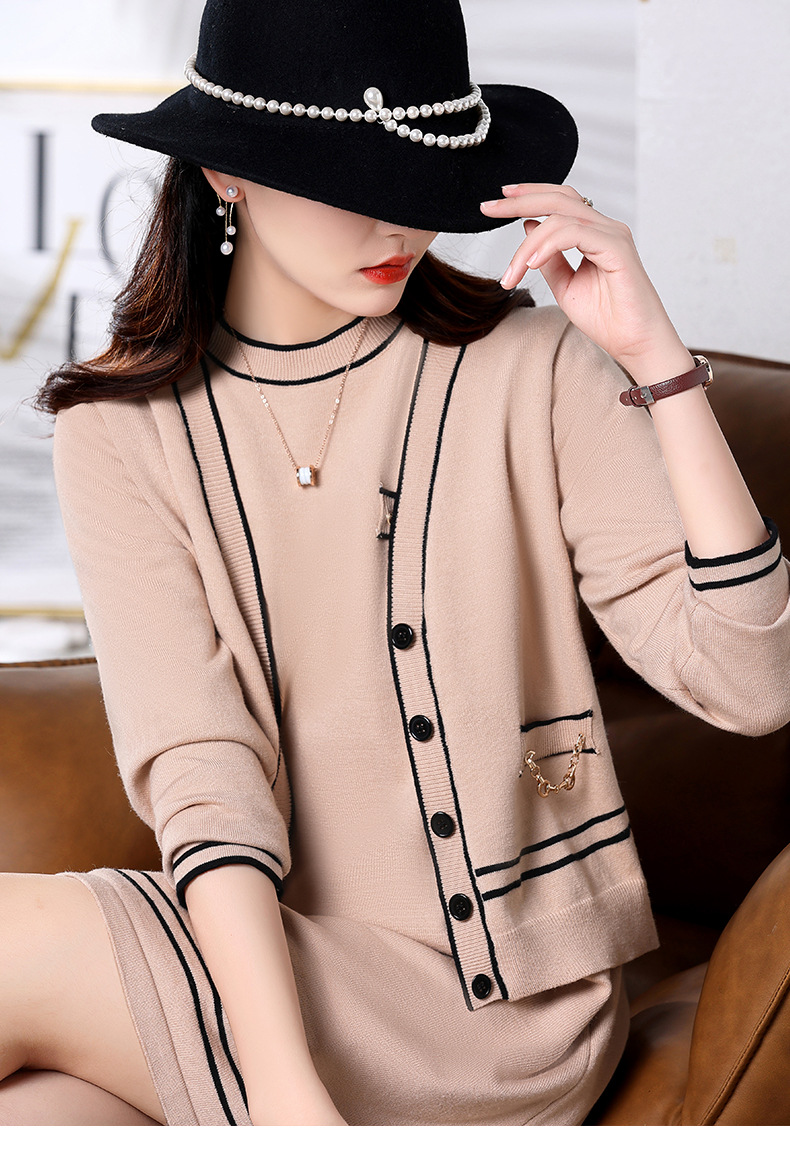 气质淑女风短袖毛衣裙,配手工链条开衫两件套 HR-YBER2272