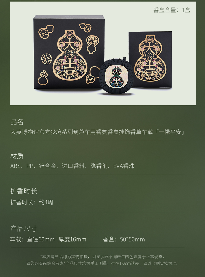 大英博物馆 东方梦境系列 葫芦车用香氛香盒挂饰香薰车载 一禄平安