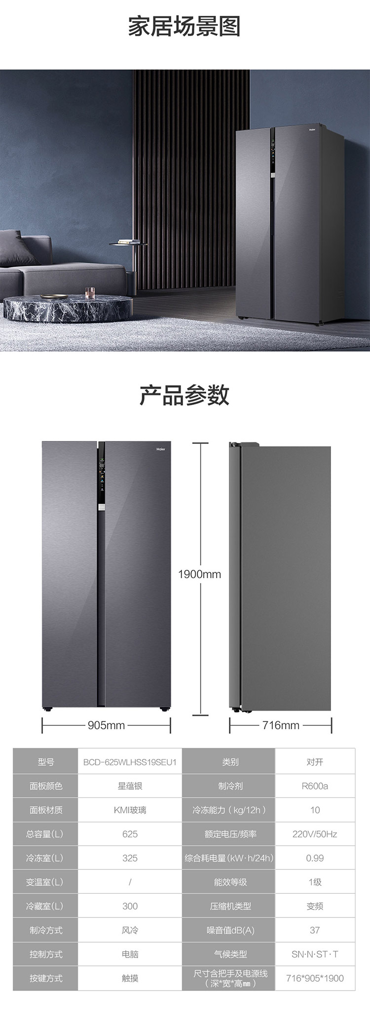 海尔(Haier)冰箱 BCD-625WLHSS19SEU1