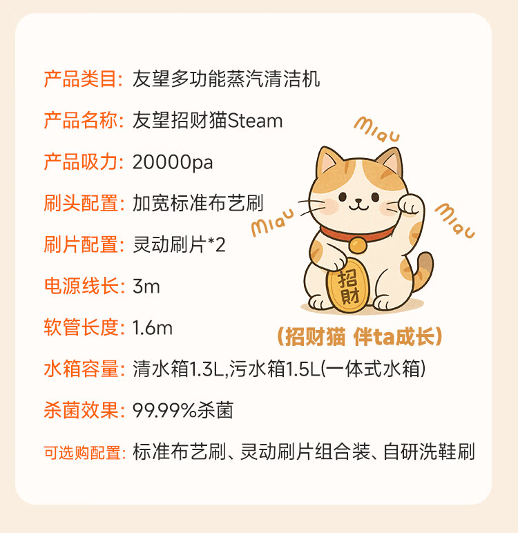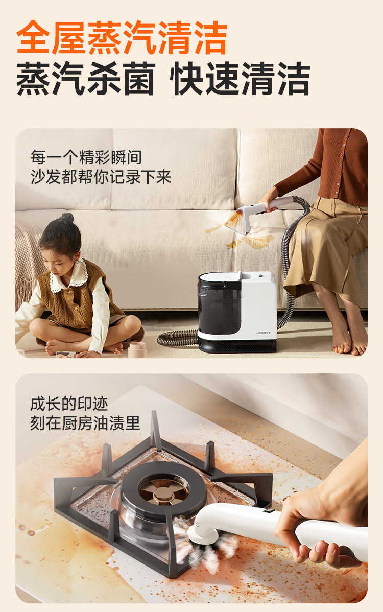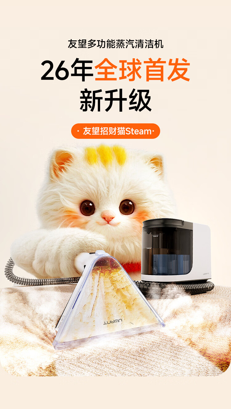 UWANT友望【旗舰】布艺清洗机洗吸一体机全屋家用地毯沙发床垫招财猫Y200steam多功能蒸汽清洁机 招财猫Steam