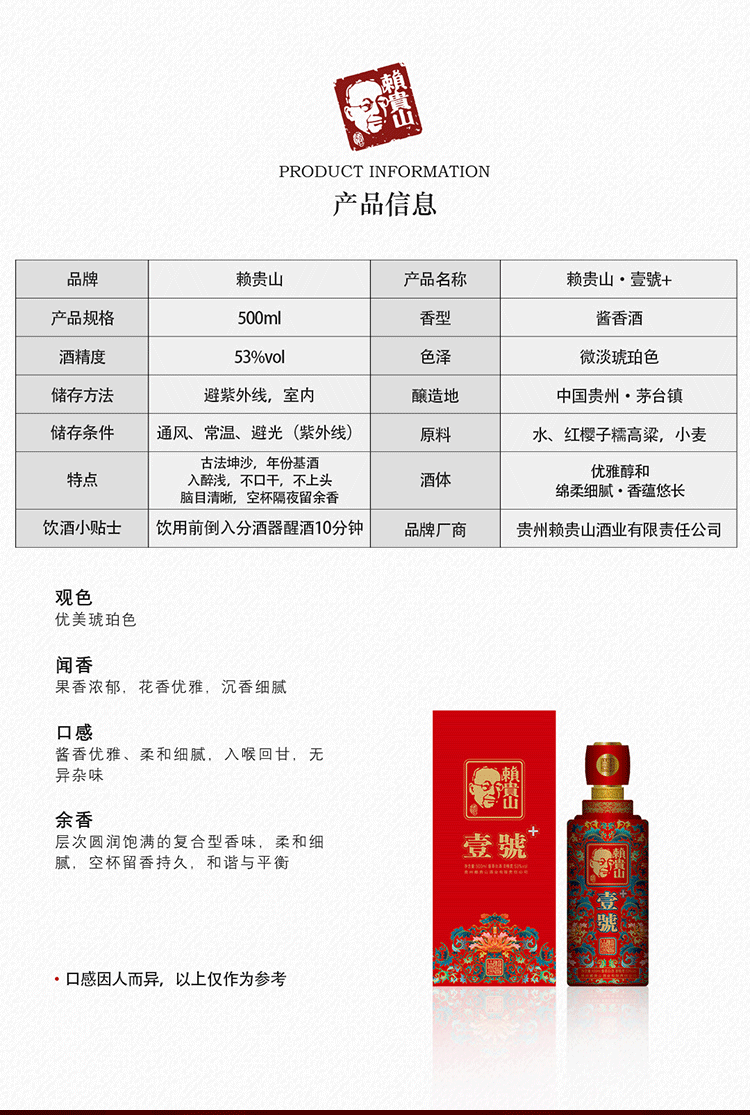 赖贵山53°酱香型白酒赖贵山壹号+ 500ml