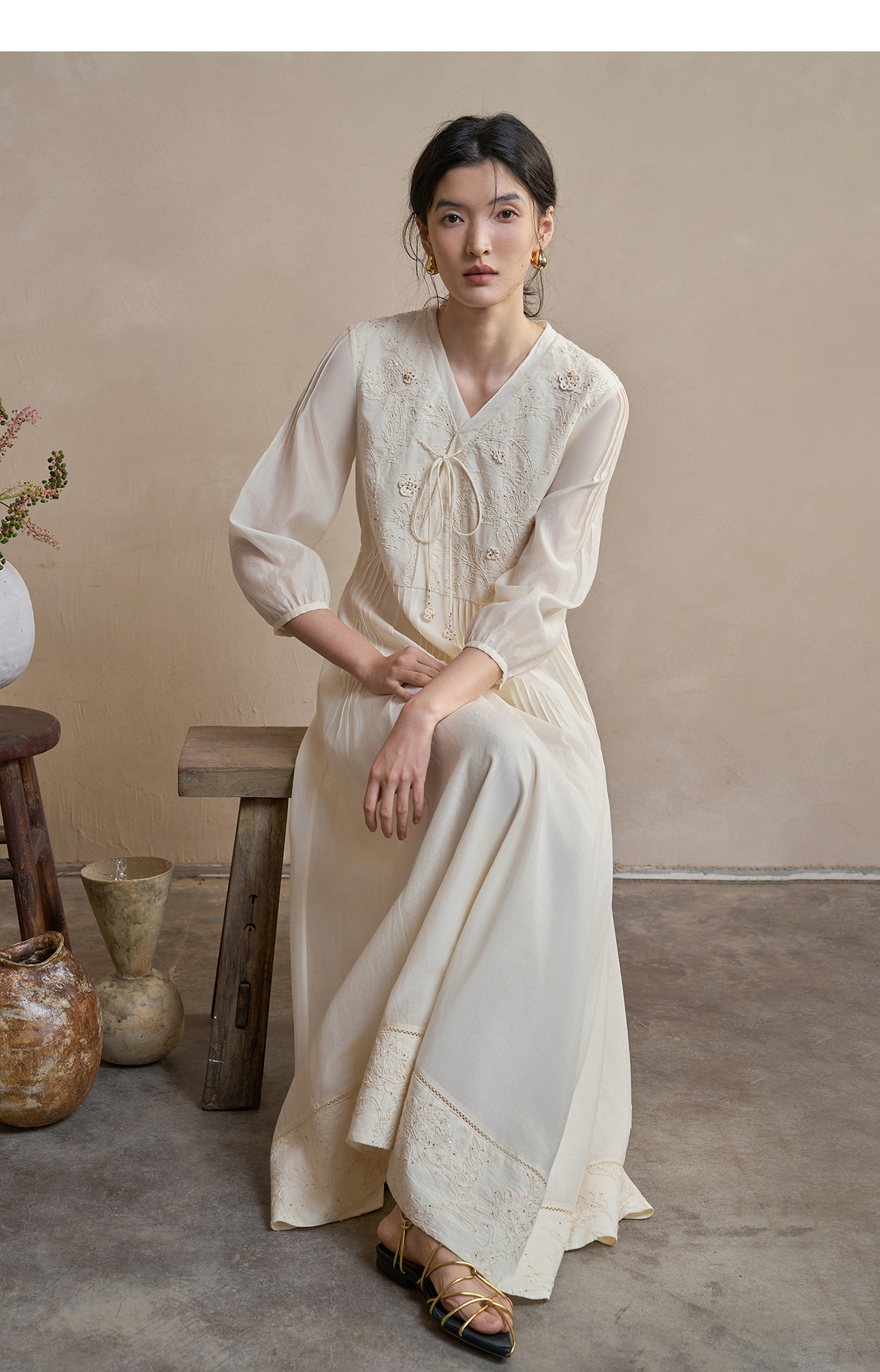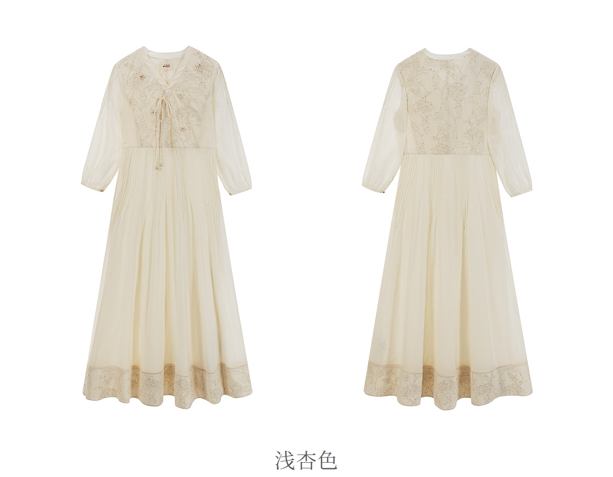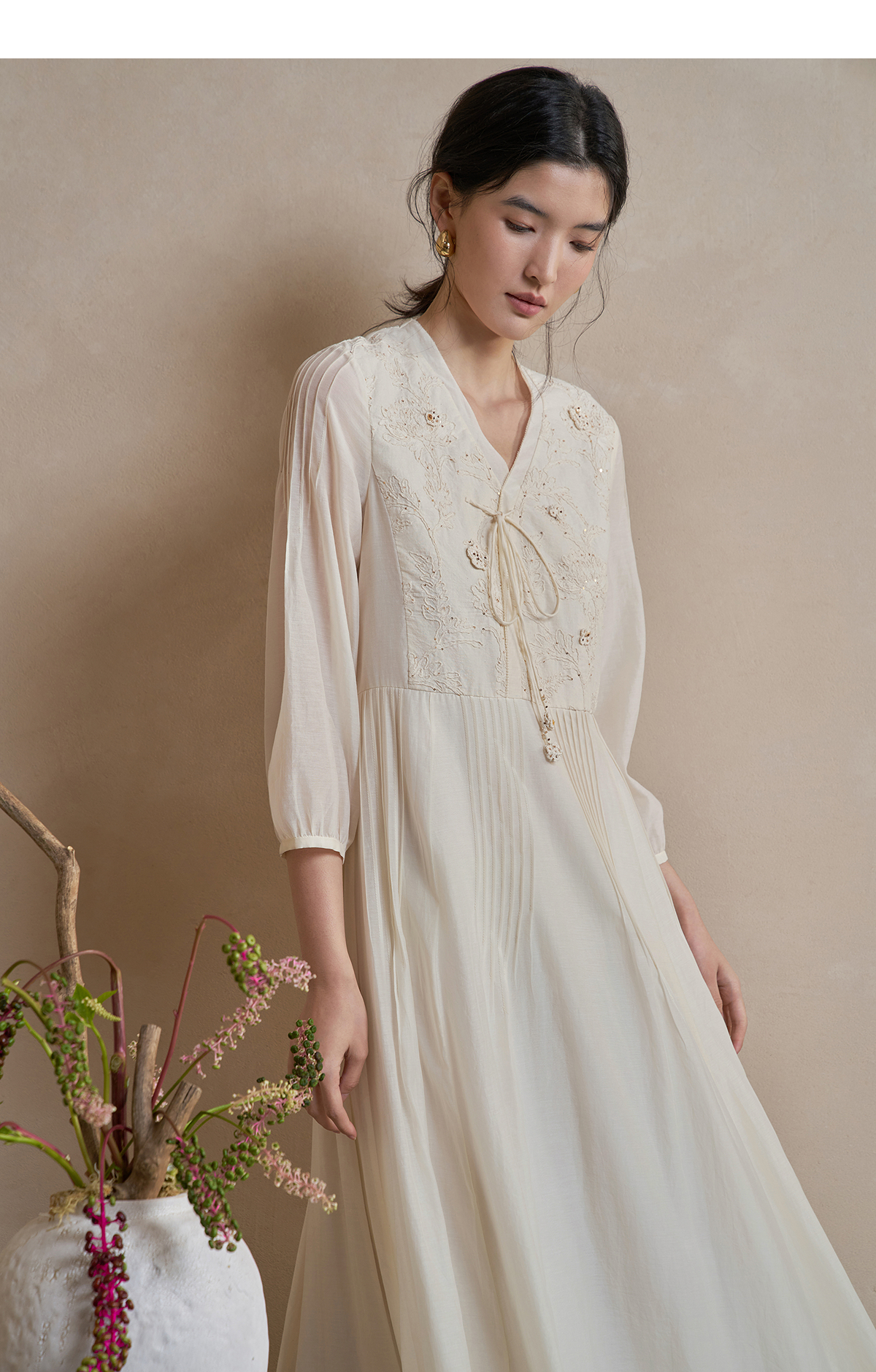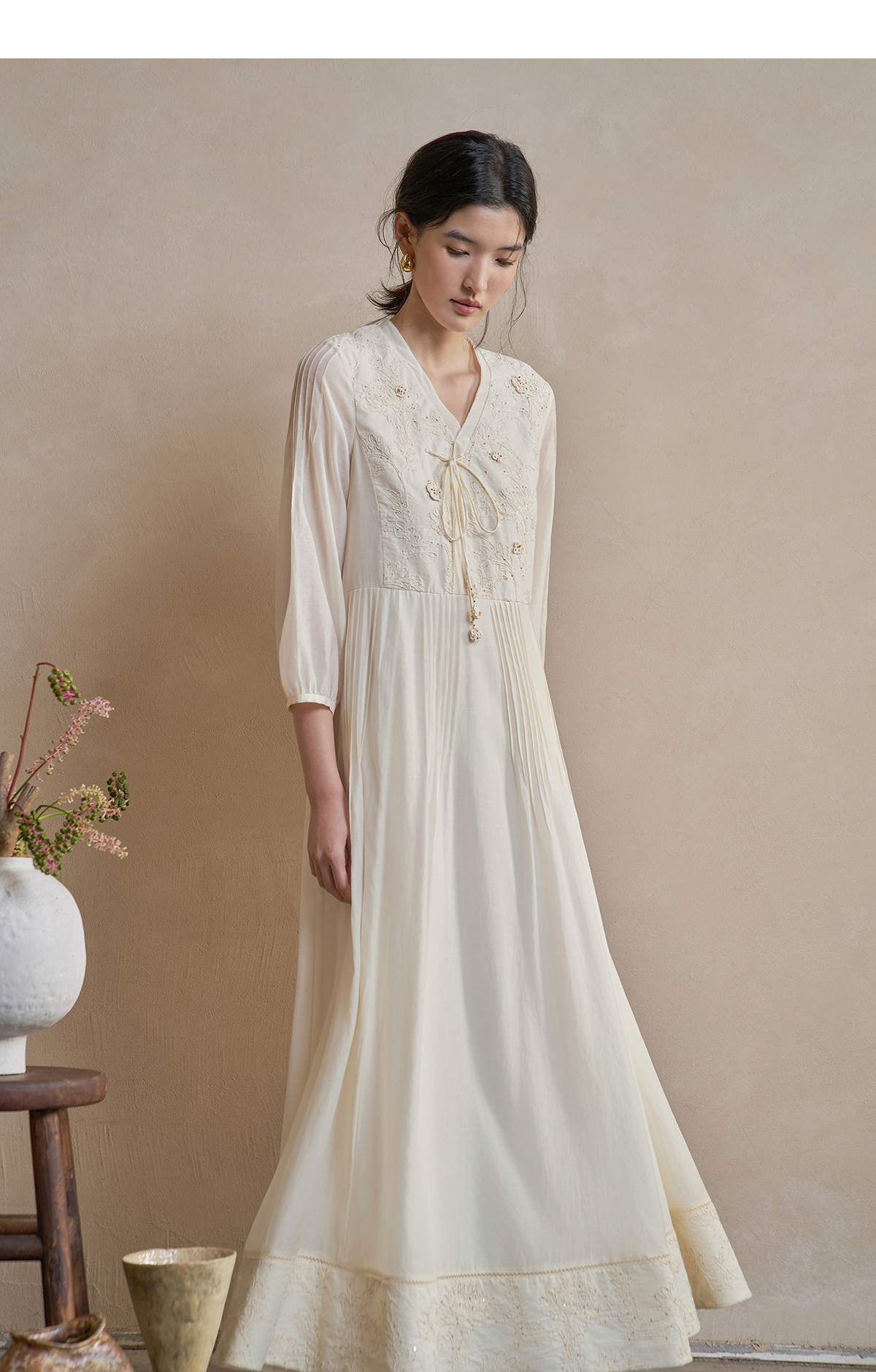 【林栖设计小店】手工钩花|丝棉绡牙签褶肌理垂感2026春新款国风连衣裙1961128