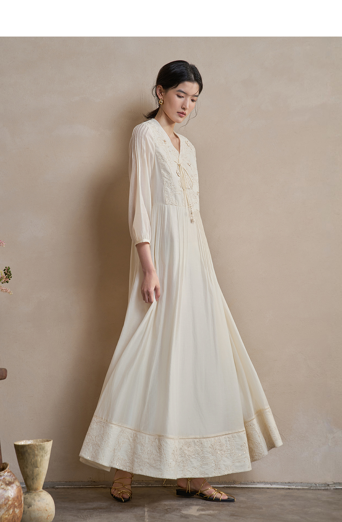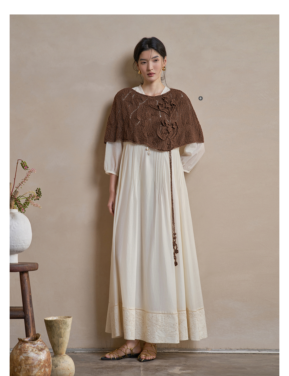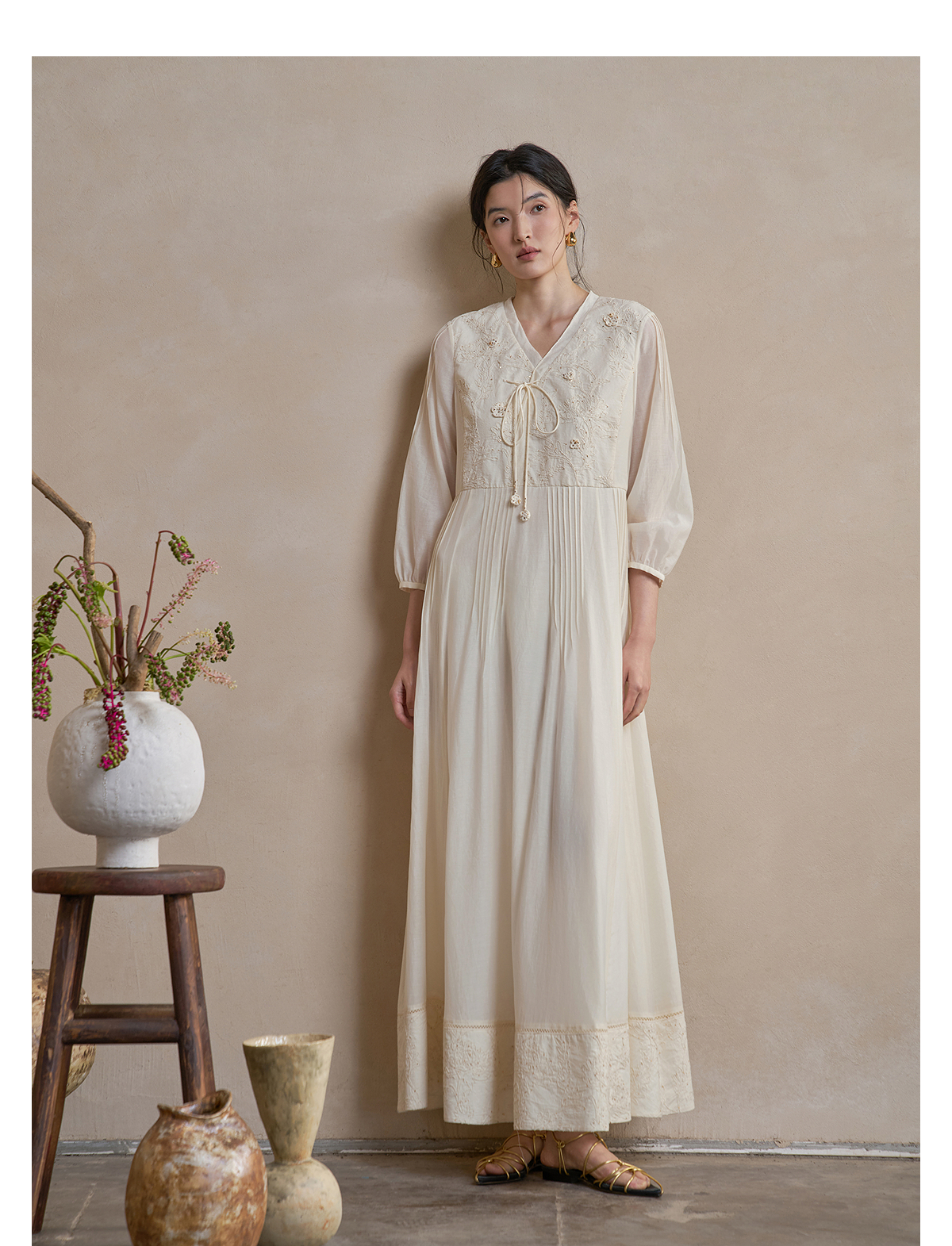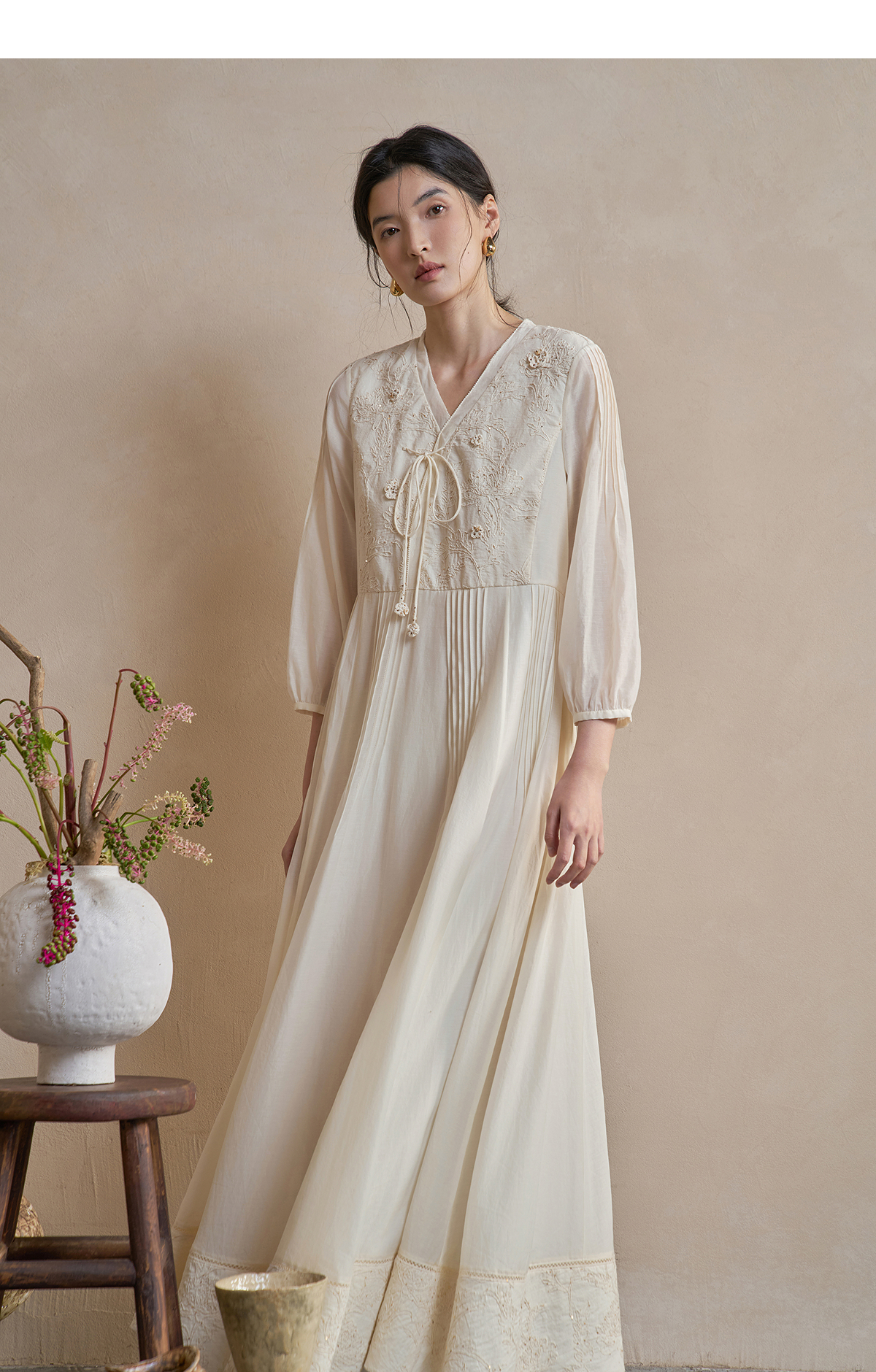 【林栖设计小店】手工钩花|丝棉绡牙签褶肌理垂感2026春新款国风连衣裙1961128