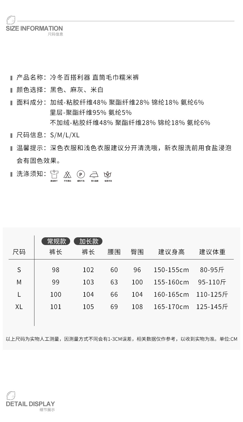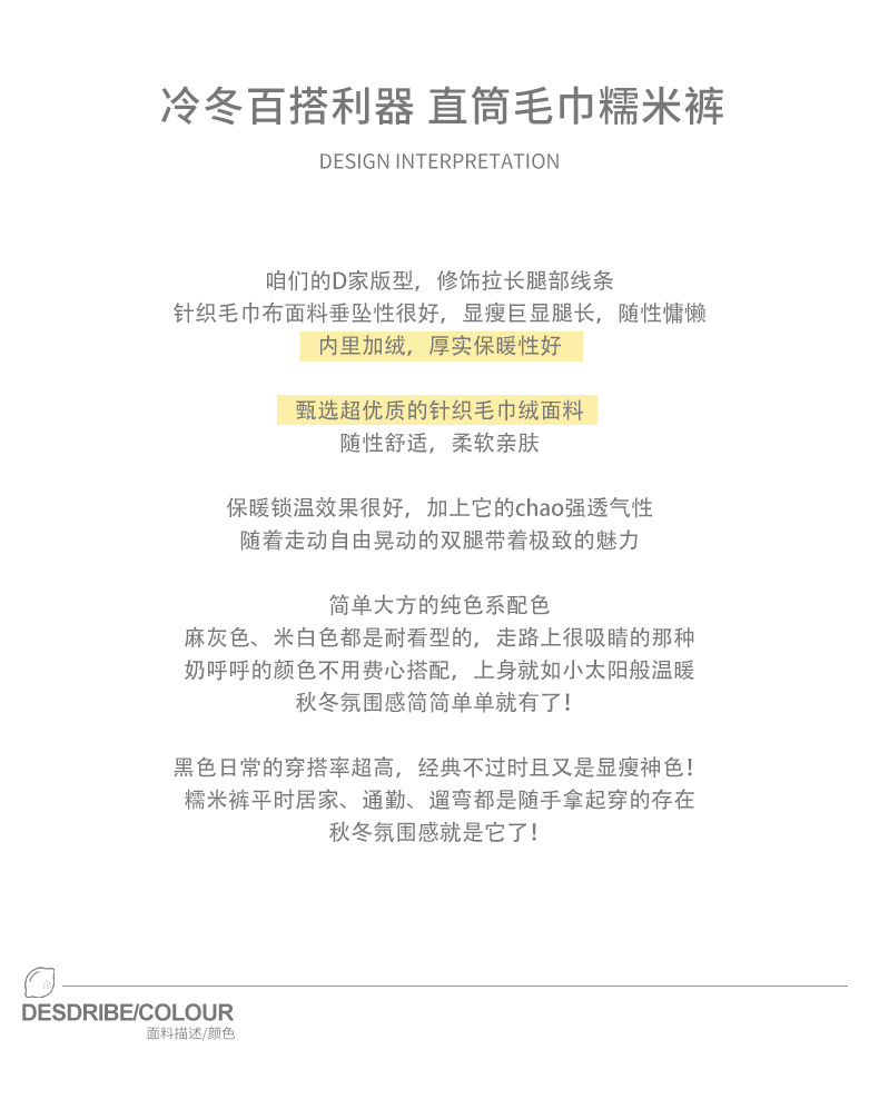 【合作款】百搭垂感显瘦毛巾糯米裤 yc0112004