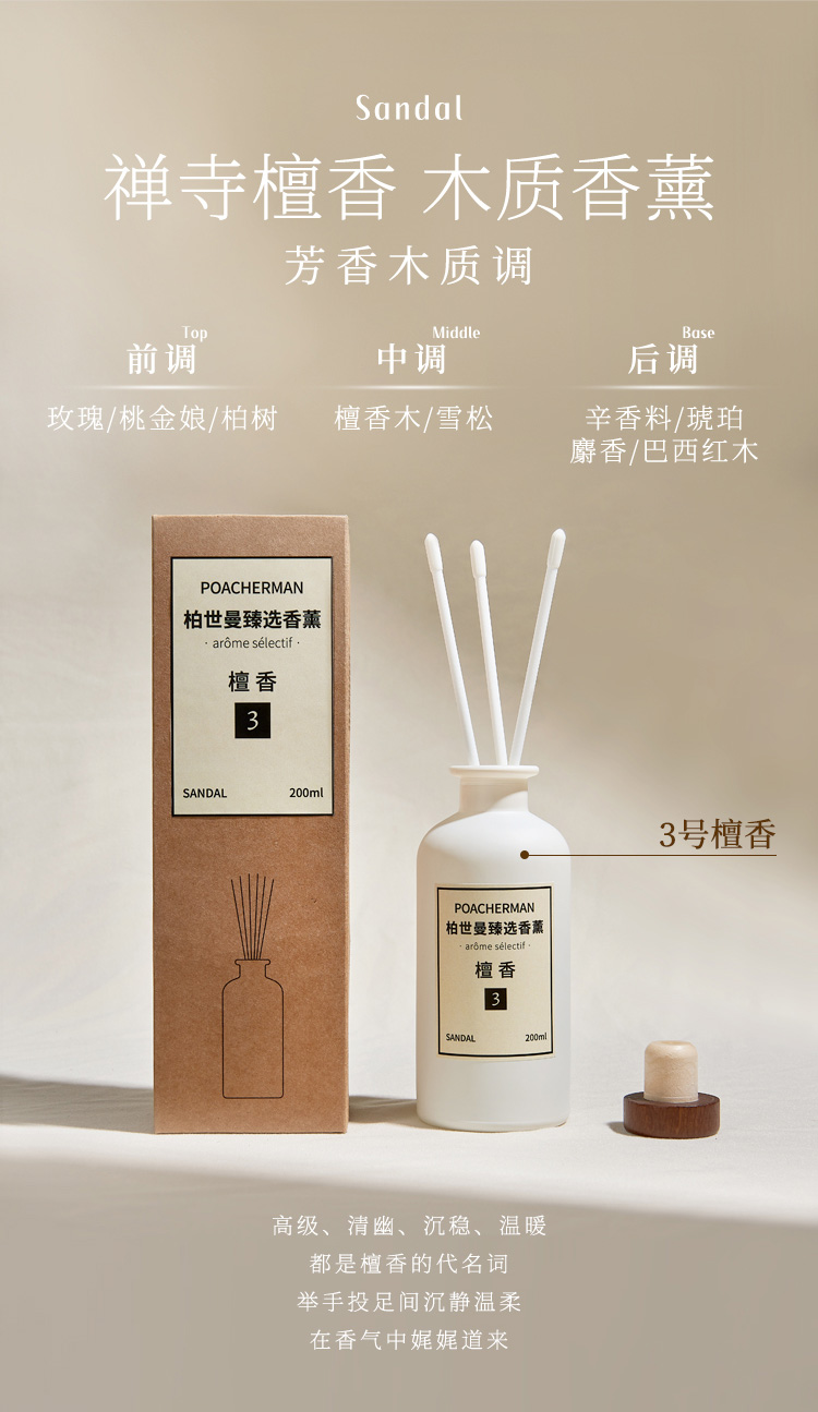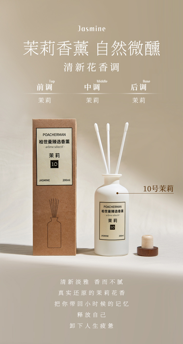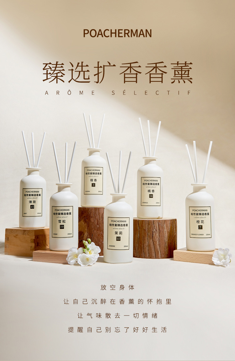 柏世曼无火香薰精油 檀香茉莉藤条香薰客厅卧室家用室内持久留香