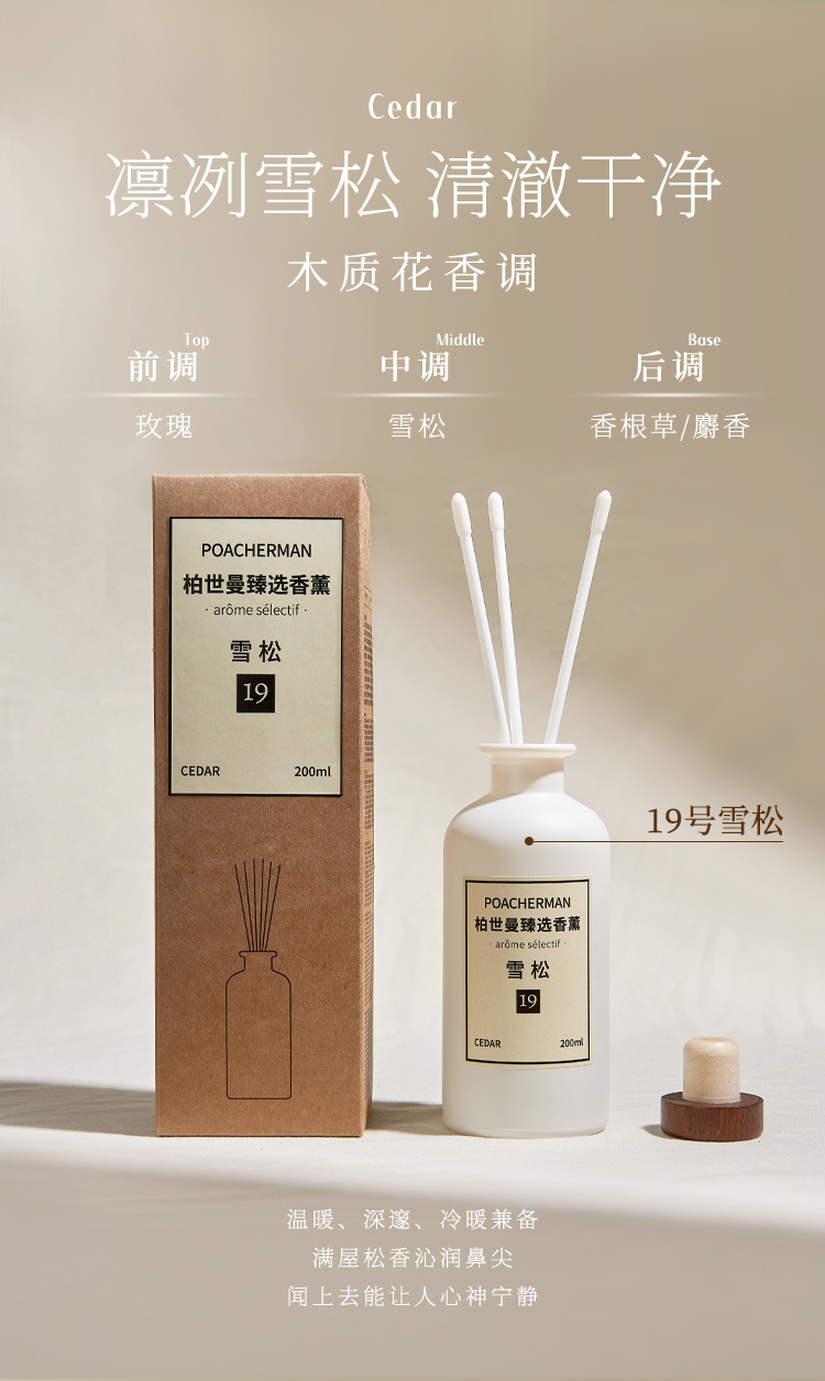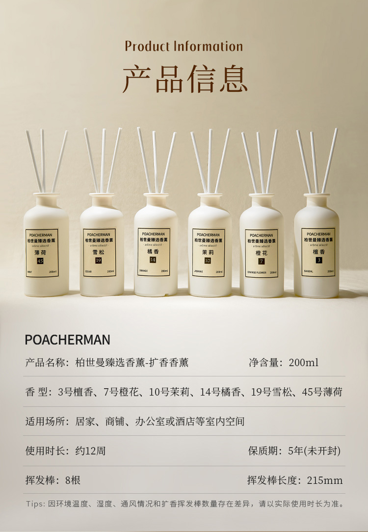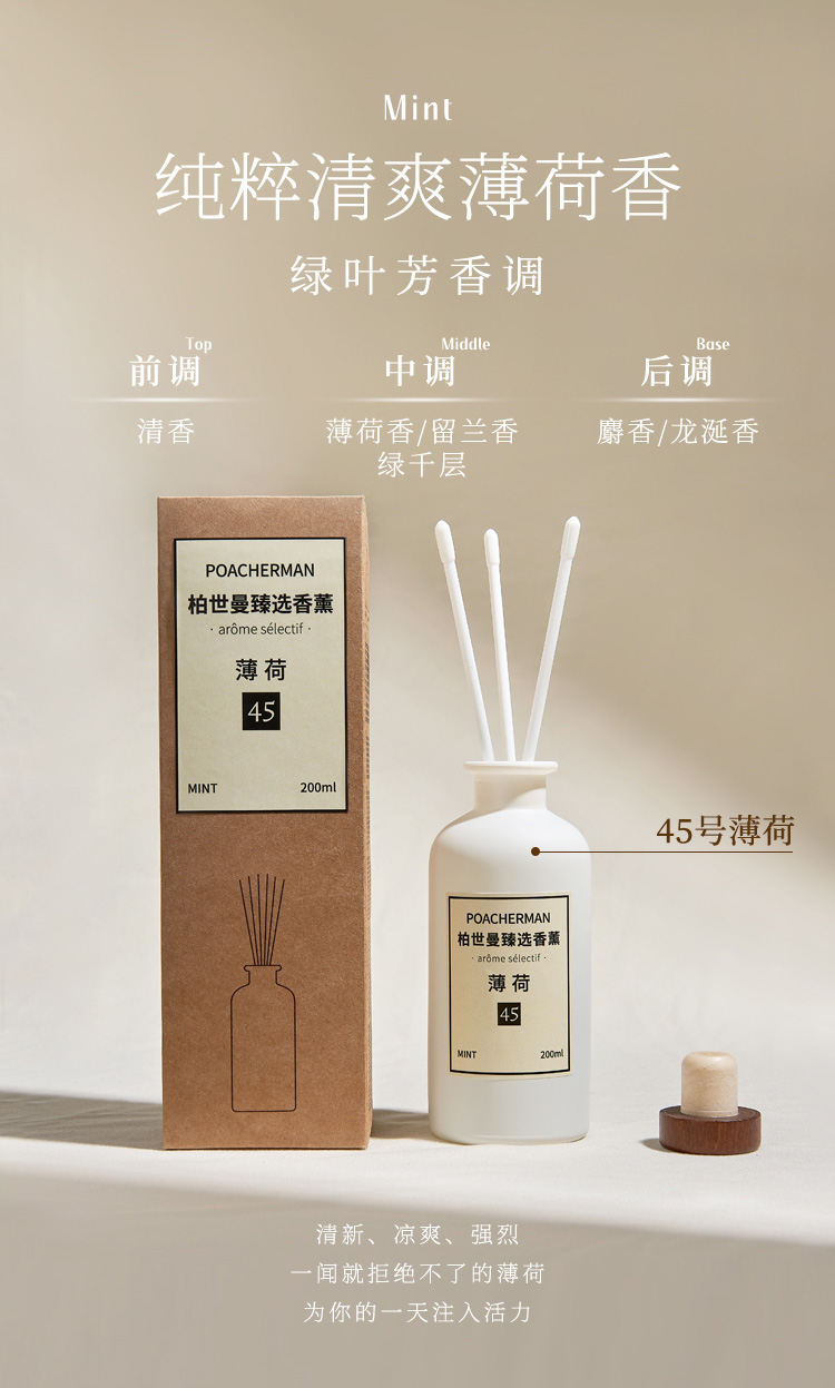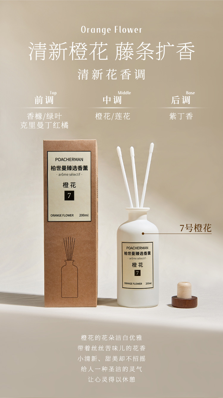 柏世曼无火香薰精油 檀香茉莉藤条香薰客厅卧室家用室内持久留香