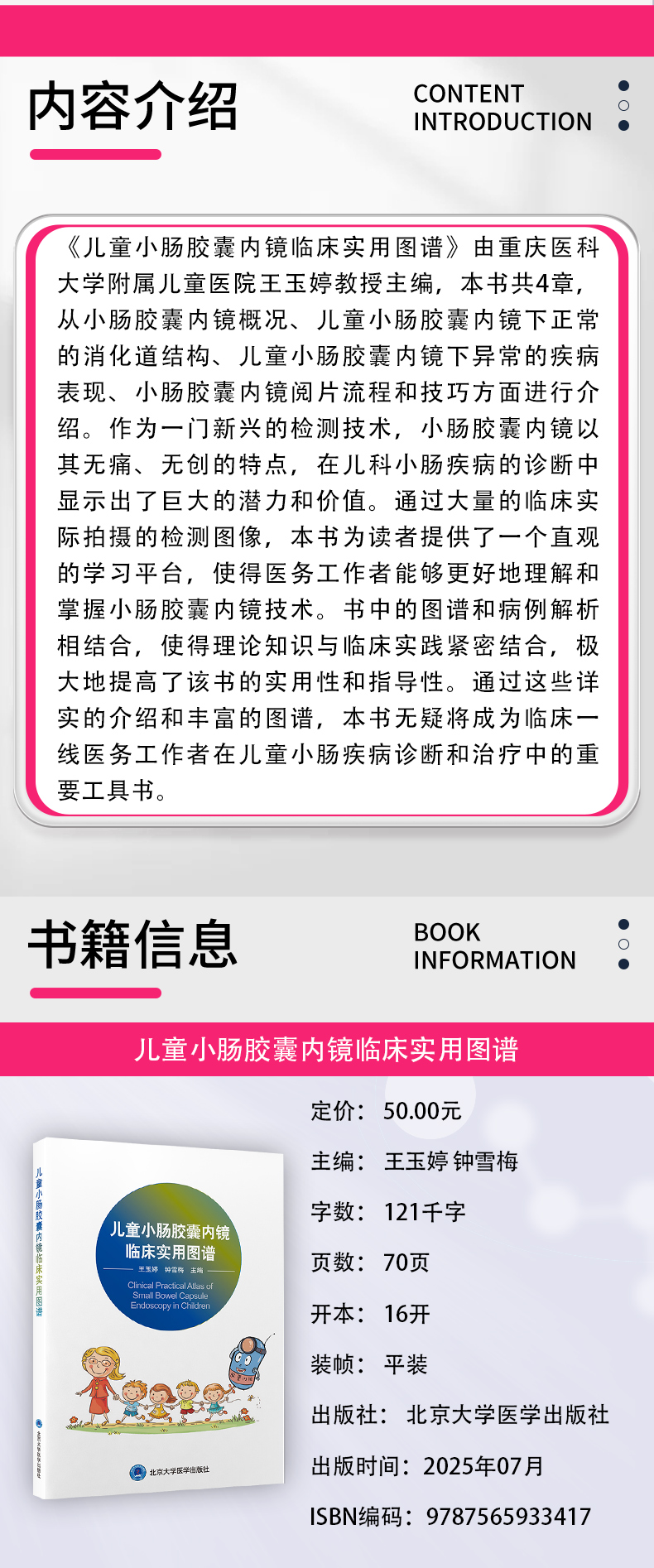 儿童小肠胶囊内镜临床实用图谱 王玉婷 钟雪梅 提供直观的学习平台 帮助读者更好地理解和掌握小肠胶囊内镜技术北京大学医学出版社