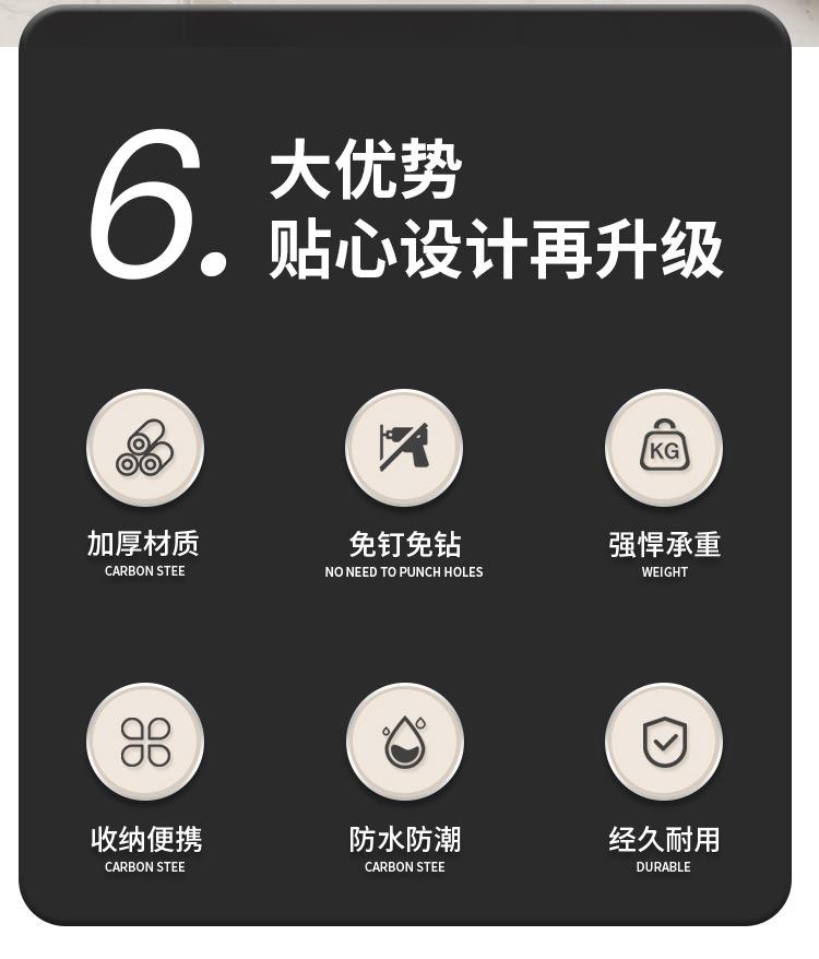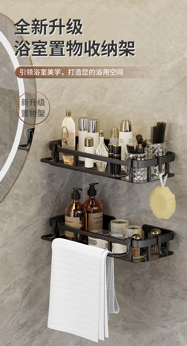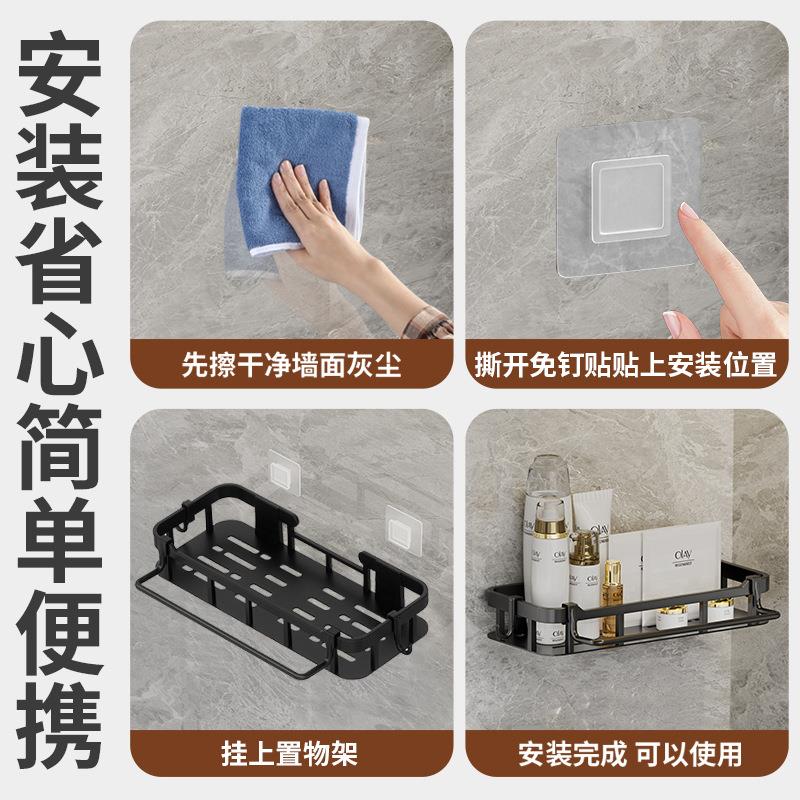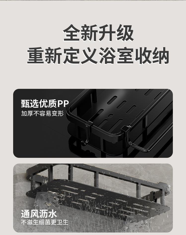 新款免打孔浴室塑料长方架淋浴房卫生间浴室单层壁挂收纳架