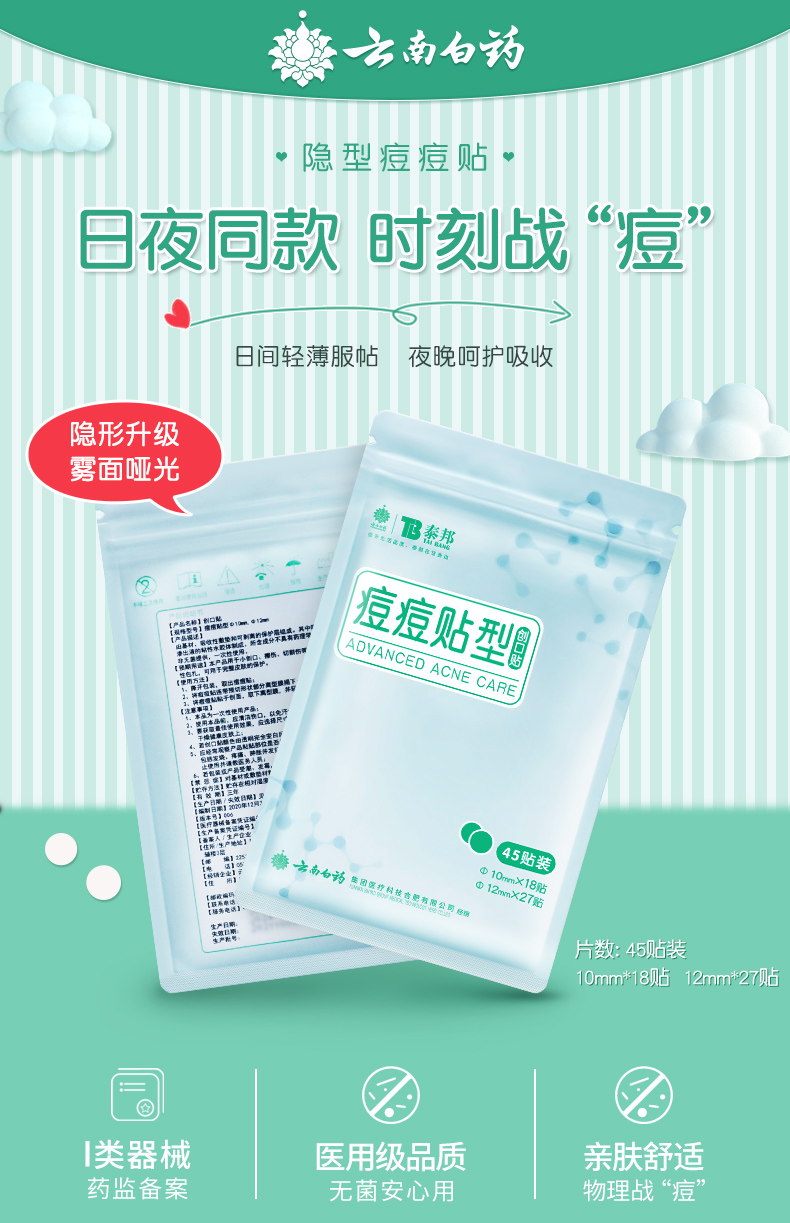 【官方正品】云南白药泰邦隐形痘痘贴45贴人工皮祛痘净痘贴痘印吸脓化妆遮瑕修复