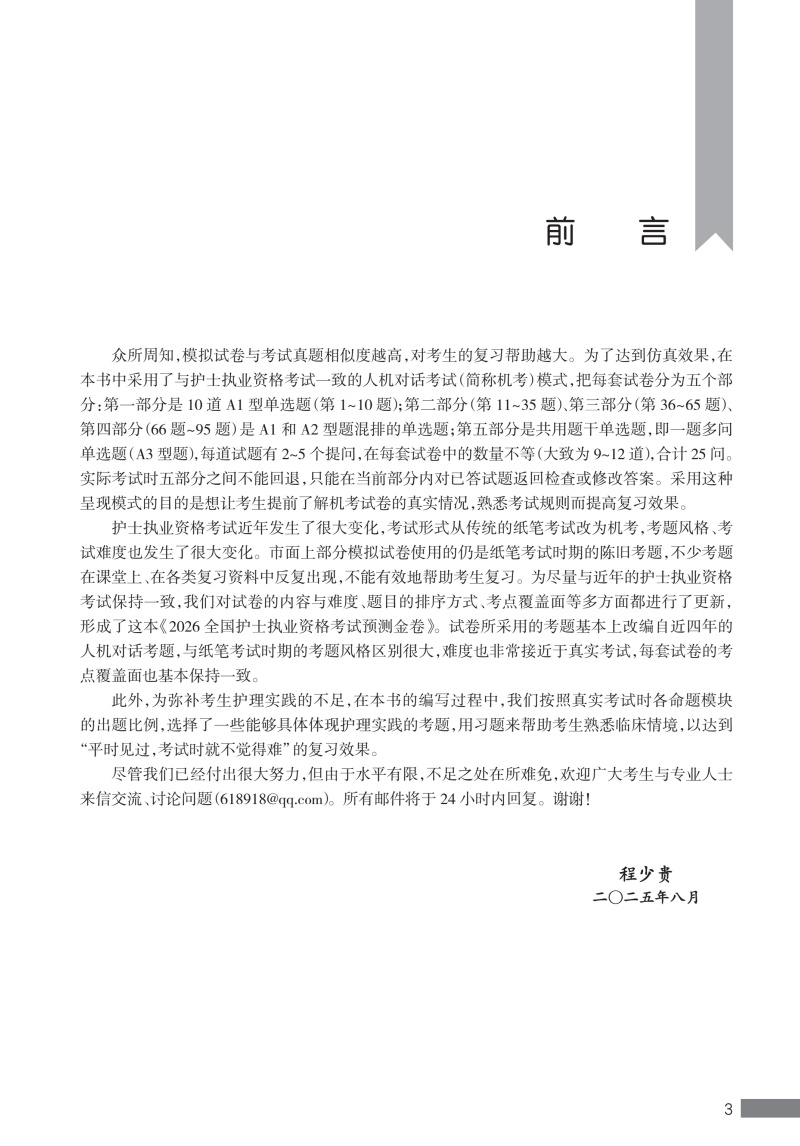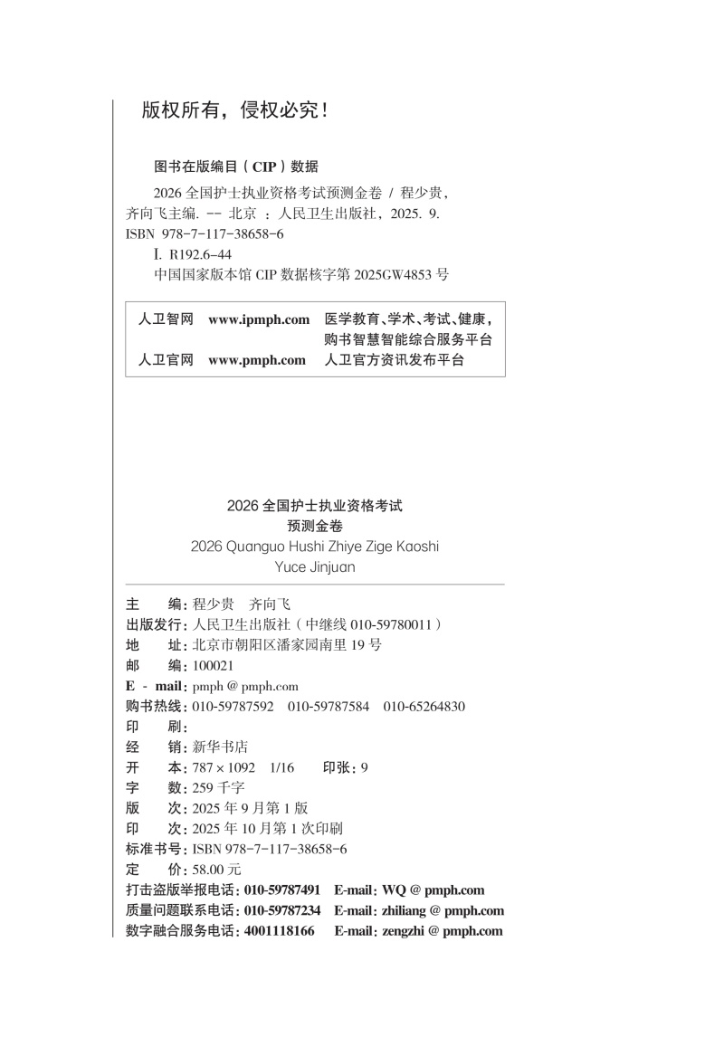 2026全国护士执业资格考试预测金卷 全国护士执业资格考试辅导用书 程少贵 齐向飞 主编 考试用书 9787117386586 人民卫生出版社